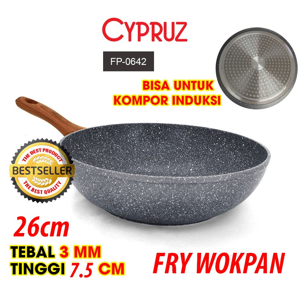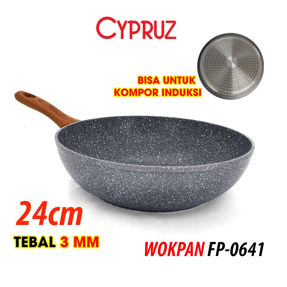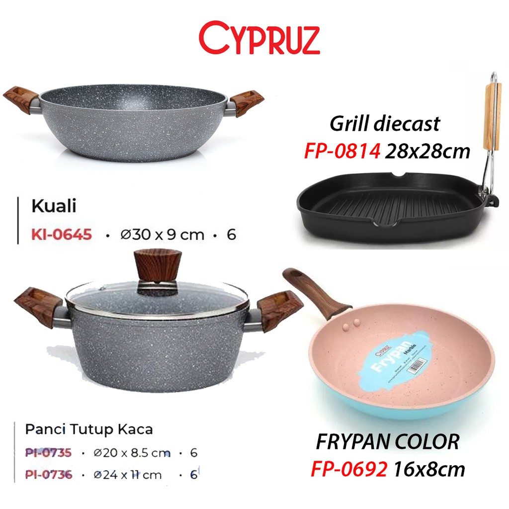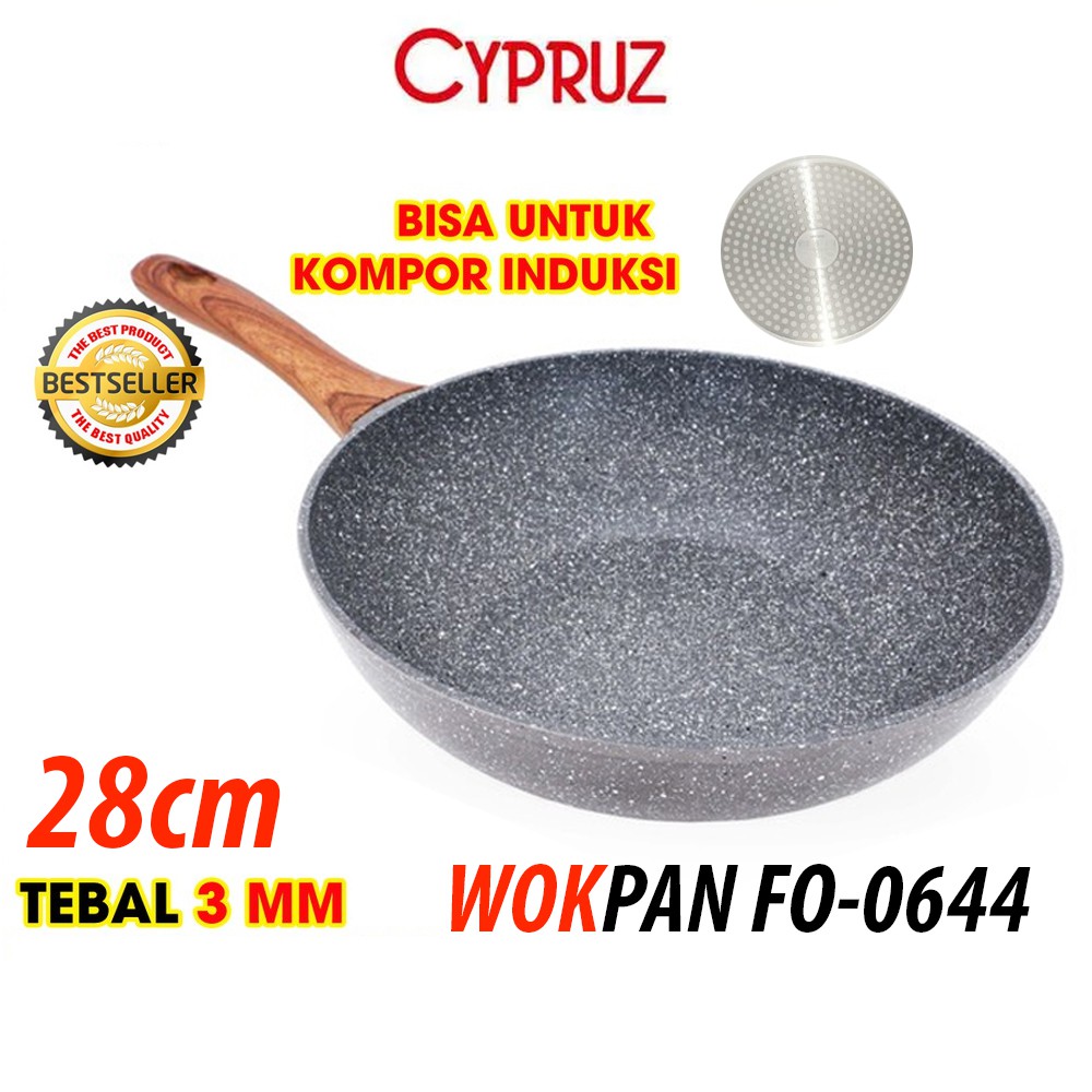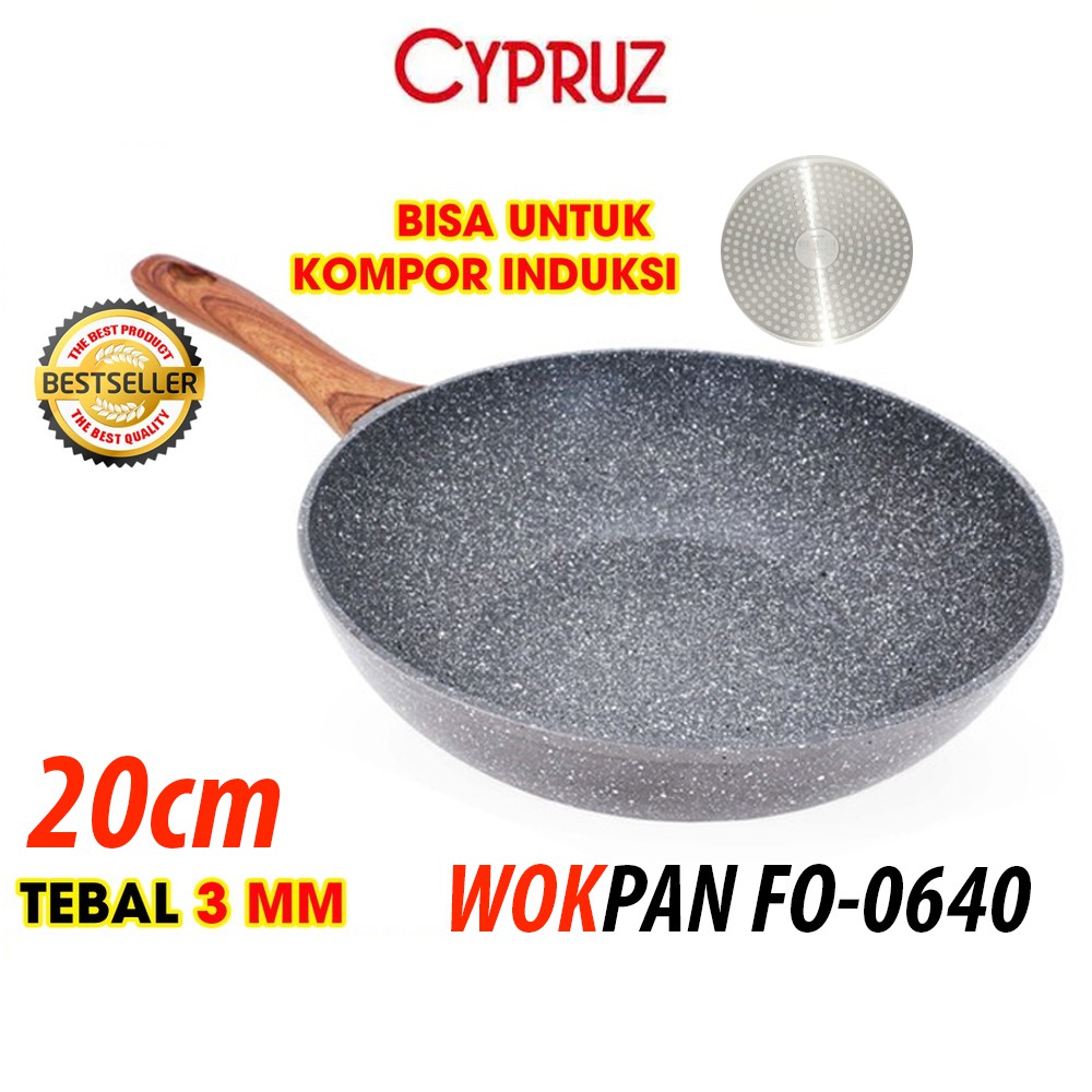 Cypruz Fryi Pan Wok Pan Sauce Pan Grilled Pan Kuali Panci Gagang Kayu anti lengket sehat