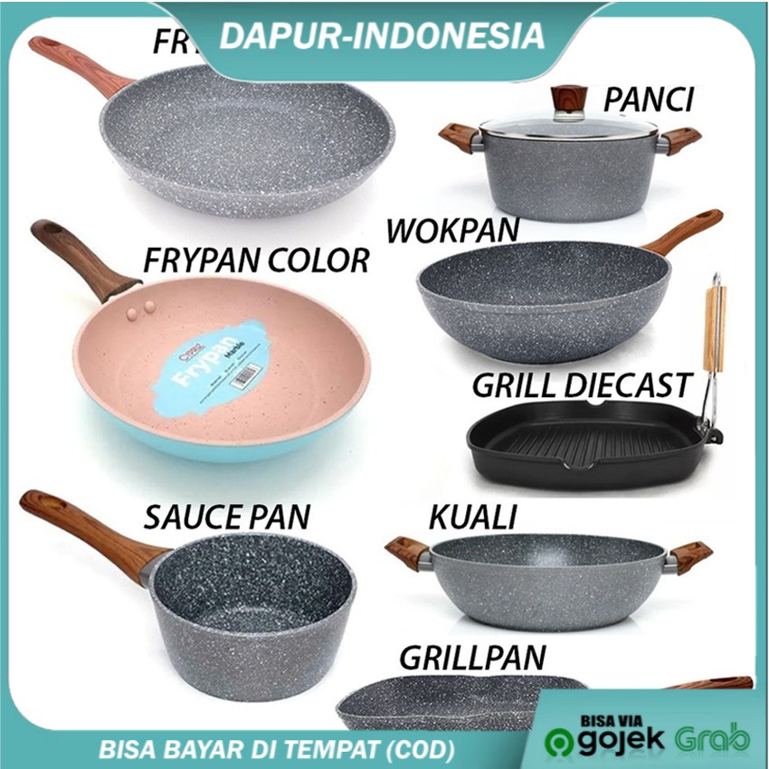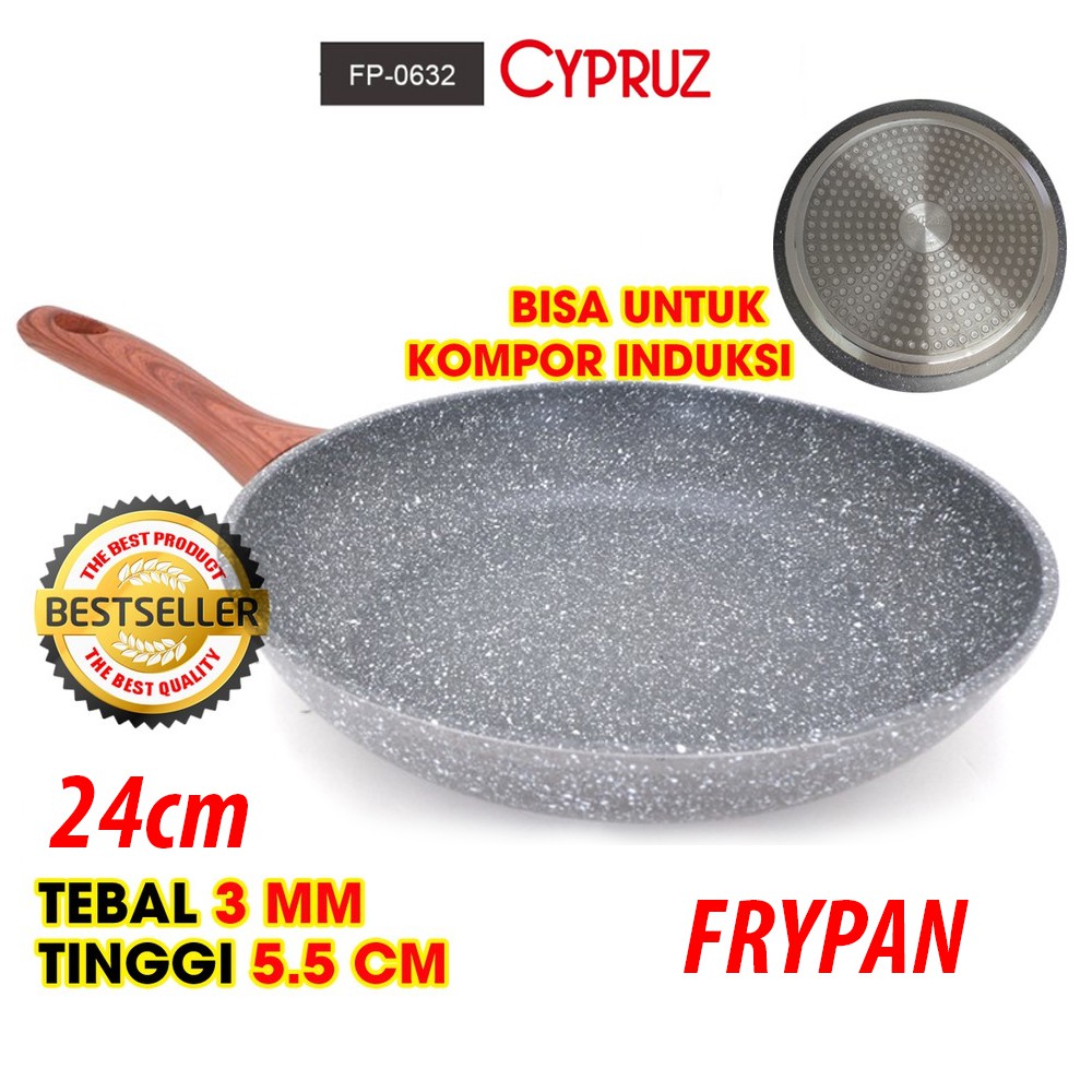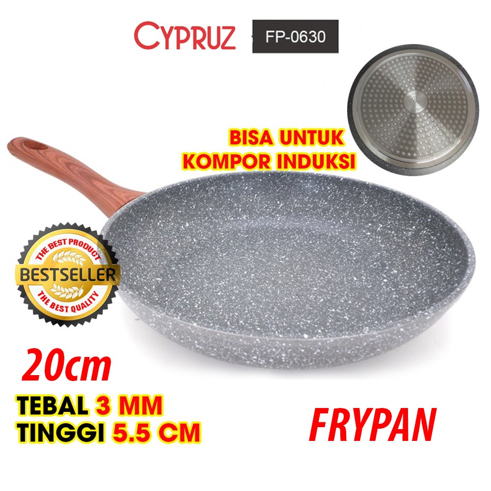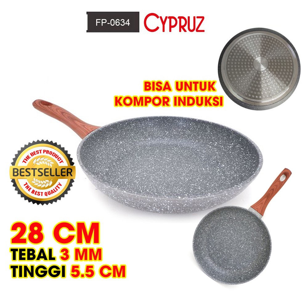 Cypruz Fryi Pan Wok Pan Sauce Pan Grilled Pan Kuali Panci Gagang Kayu anti lengket sehat
