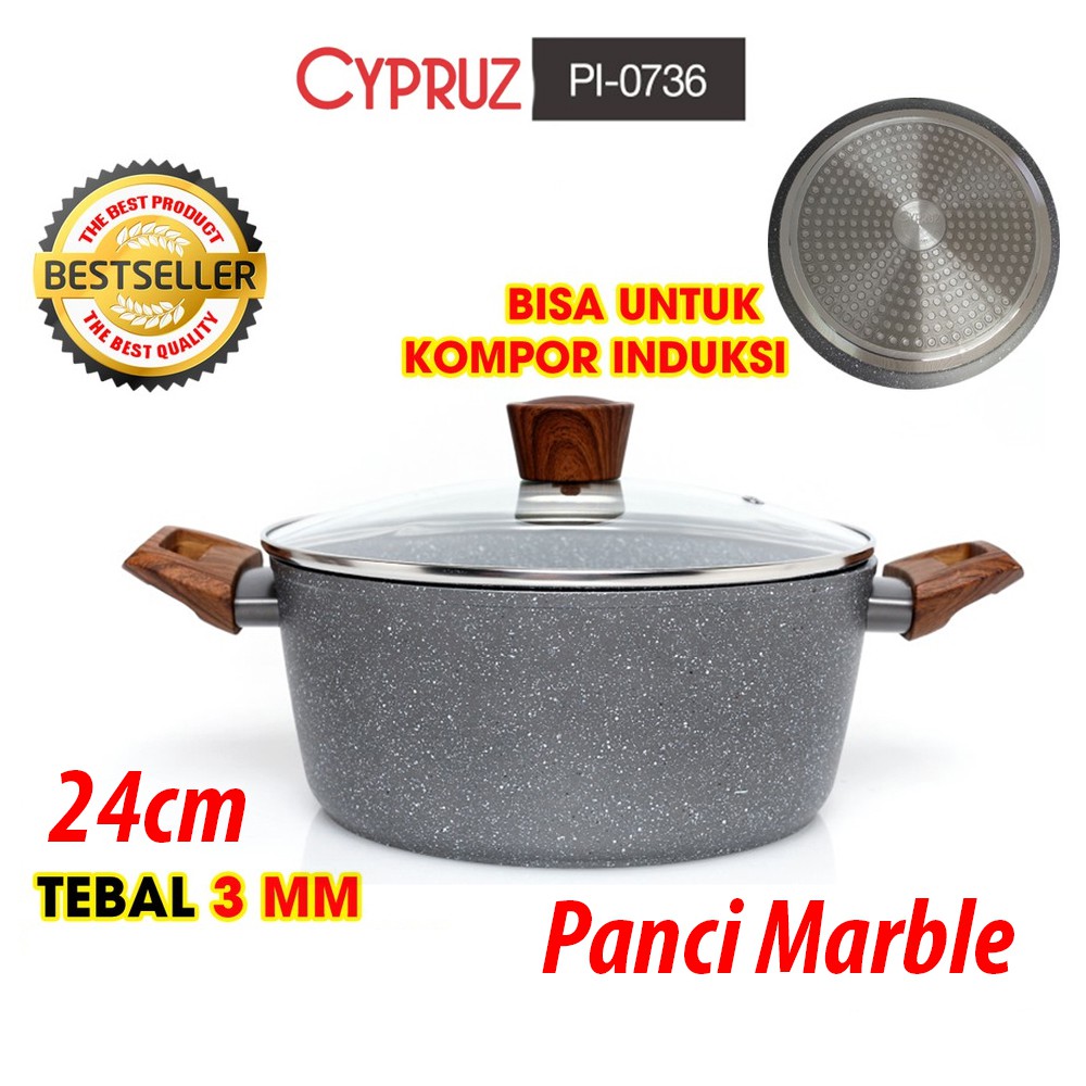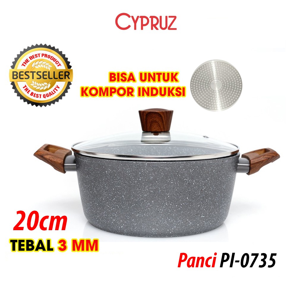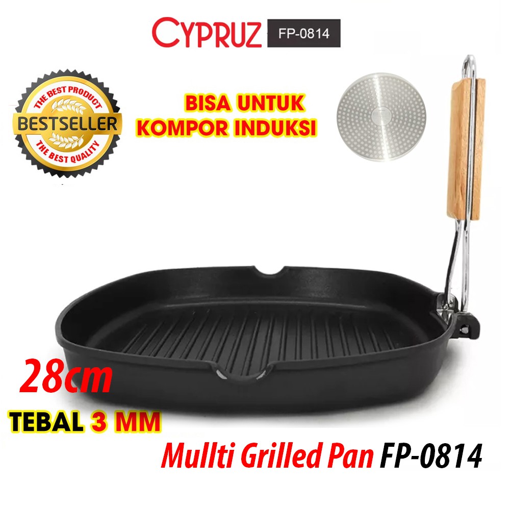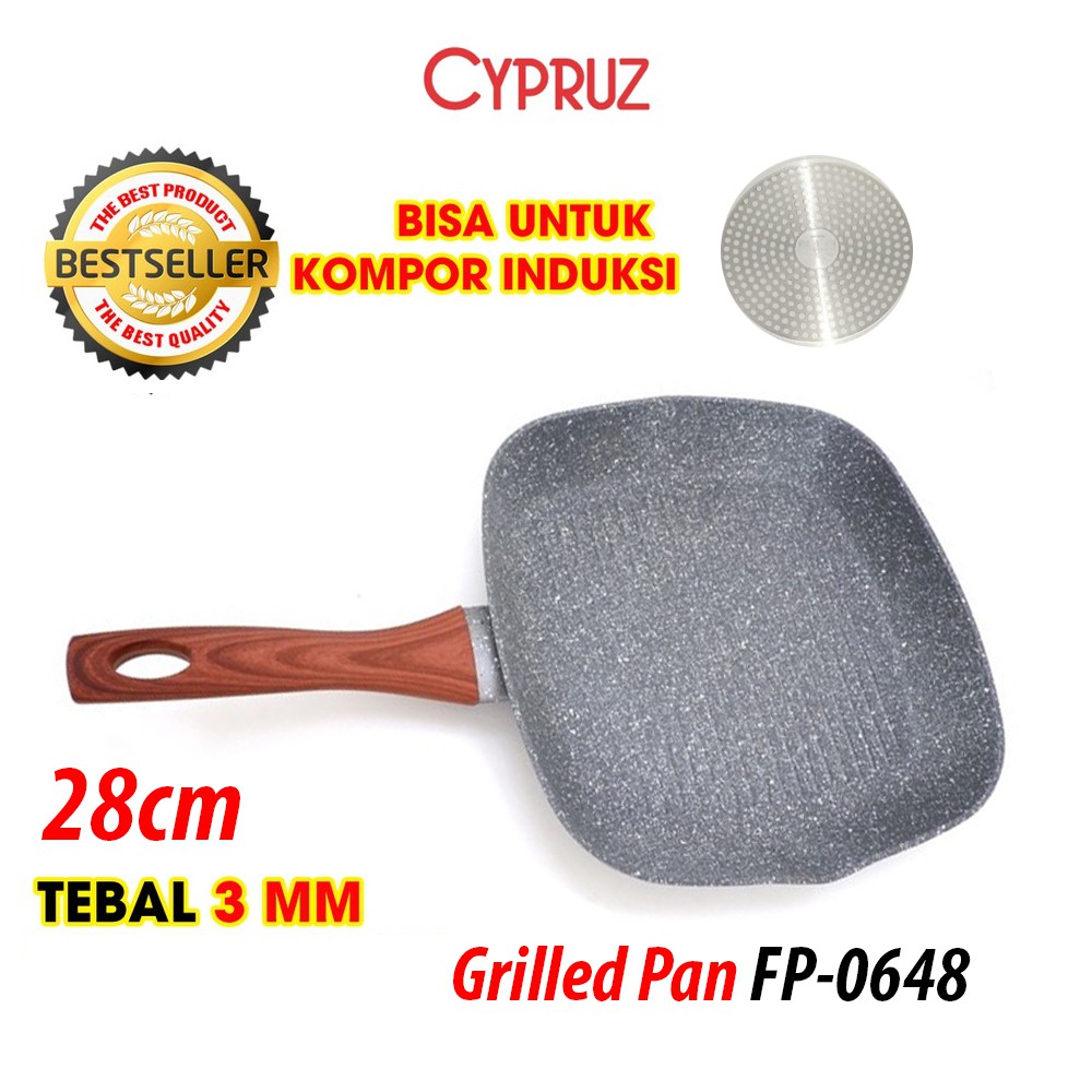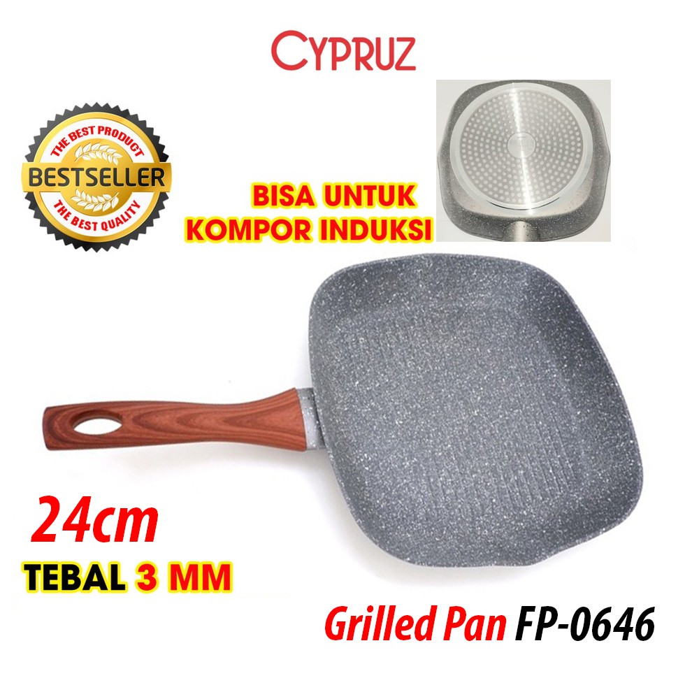 Cypruz Fryi Pan Wok Pan Sauce Pan Grilled Pan Kuali Panci Gagang Kayu anti lengket sehat