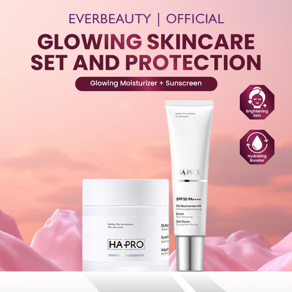 HA PRO Moisturizer Cream 30g + Sunscreen SPF50 PA++++ 40g |Skincare Pemula Anti Ribet | Bundling Glowing Series | Paket Skincare Pencerah Wajah | Skincare Daily | Skincare Bundling Glowing