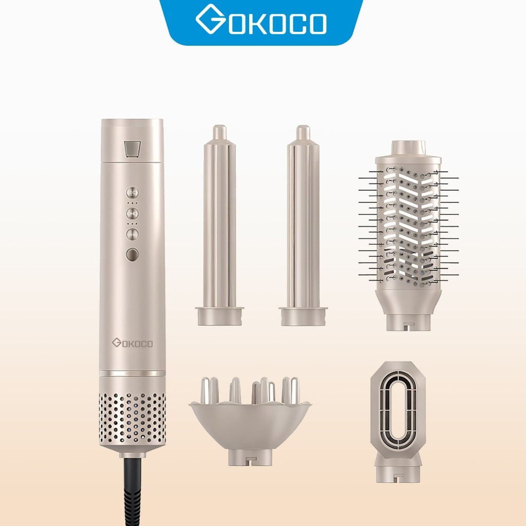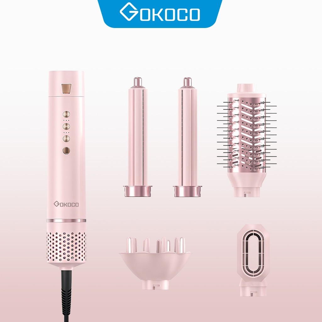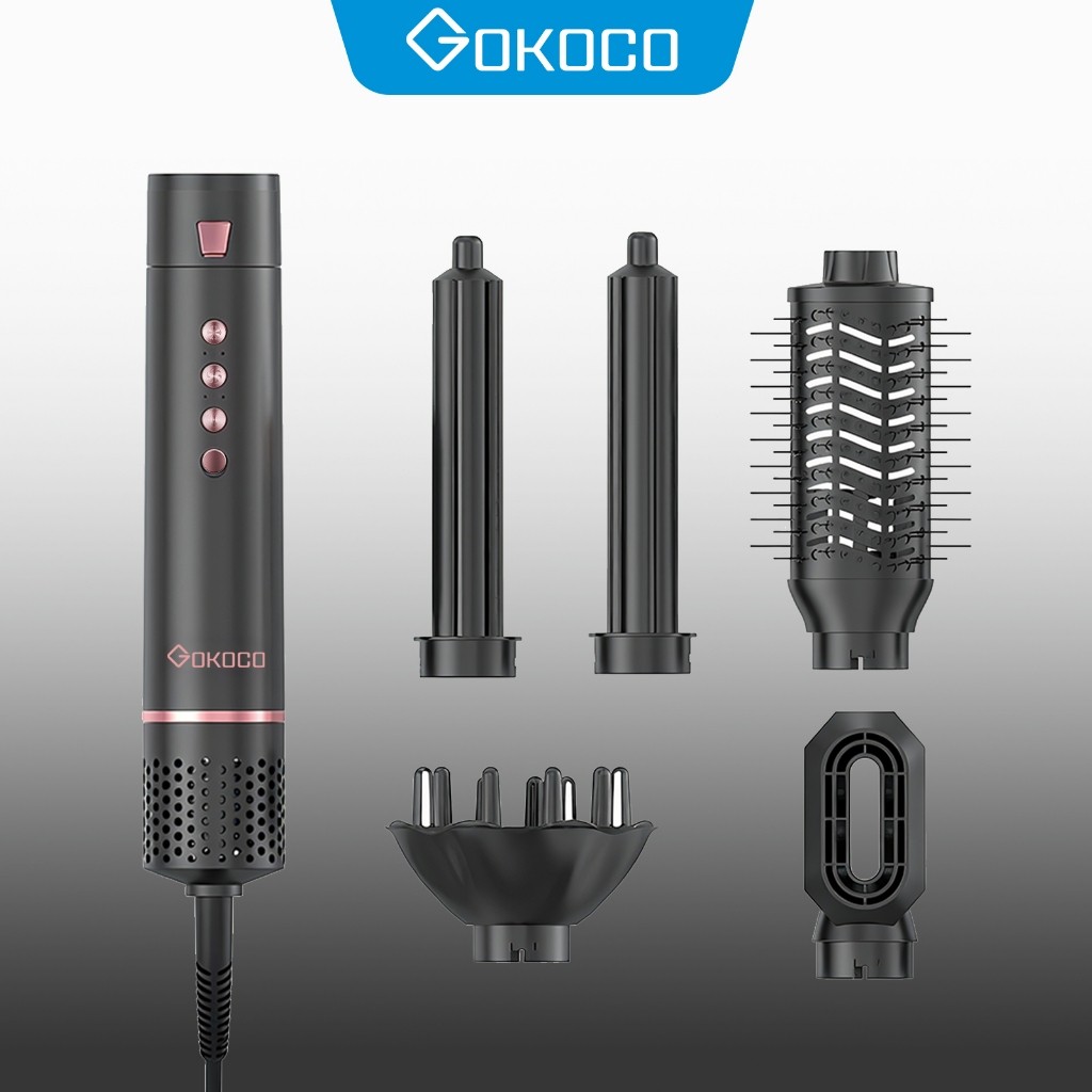 Gokoco Multifunctional High Speed Hair Dryer Set 5-in-1 Hair Dryer Brush with Straightening and Curling Iron