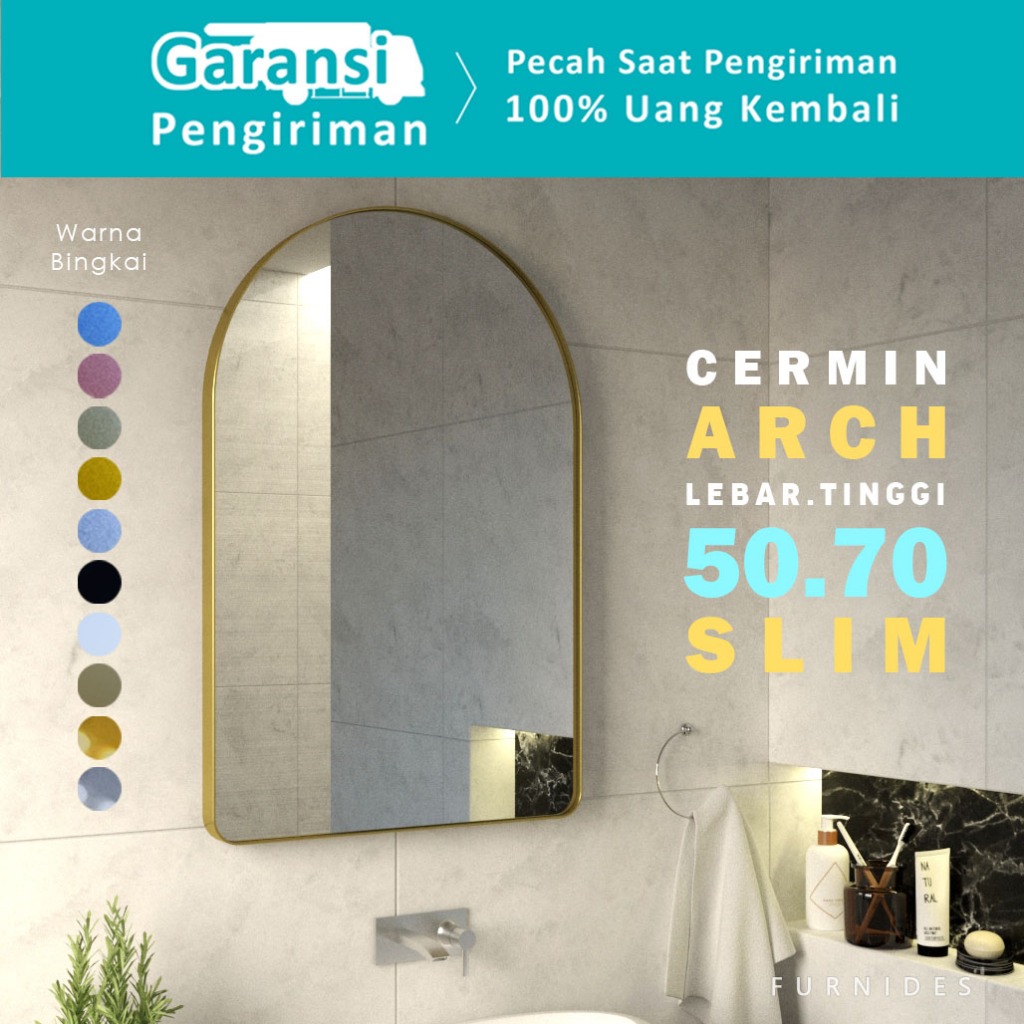 Cermin Arch Setengah Oval 50x70 cm | Frame Slim