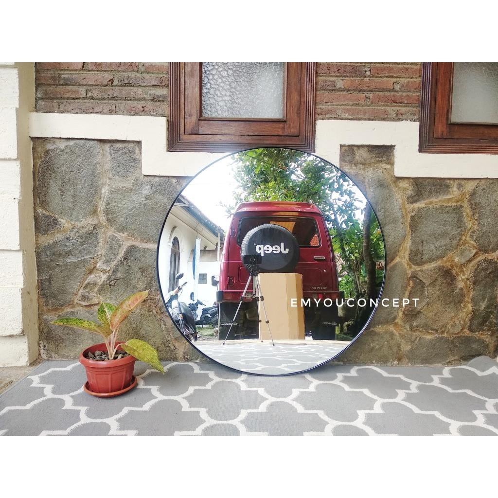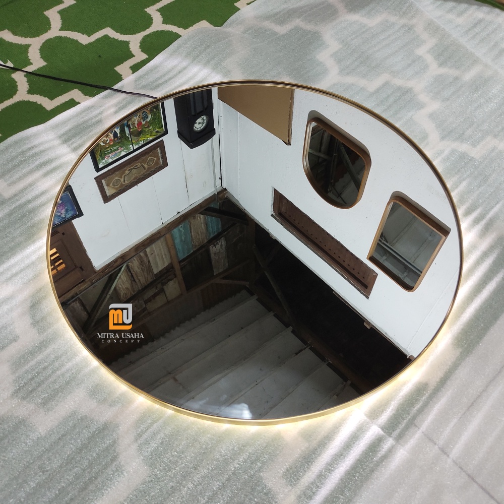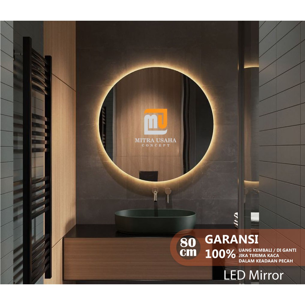 Cermin Bulat 80cm LED Pigura Bulat Besi Cermin wastafel industrial mirror Cermin lampu LED