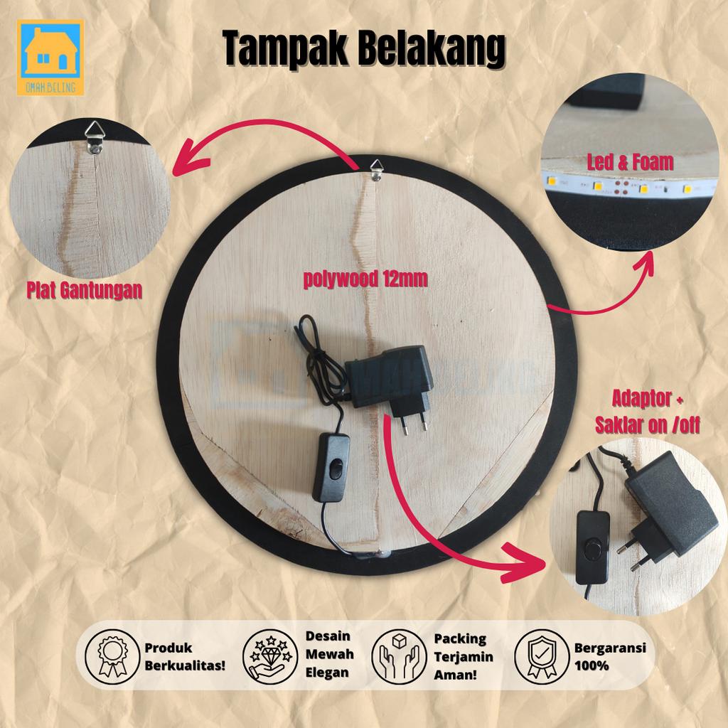 Cermin Bulat LED Strip D50 & D60 Kaca Cermin Lampu Aesthetic Cermin Dinding Make Up Wastafel Mirror LED Lamp
