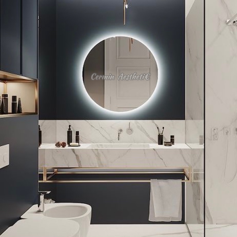 Cermin Bulat LED strip diameter 30/40 cm Kaca Cermin Lampu Aesthetic cermin dinding cermin kamar mandi cermin wastafel cermin kaca cermin makeup cermin touch