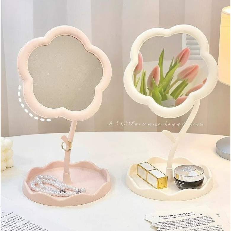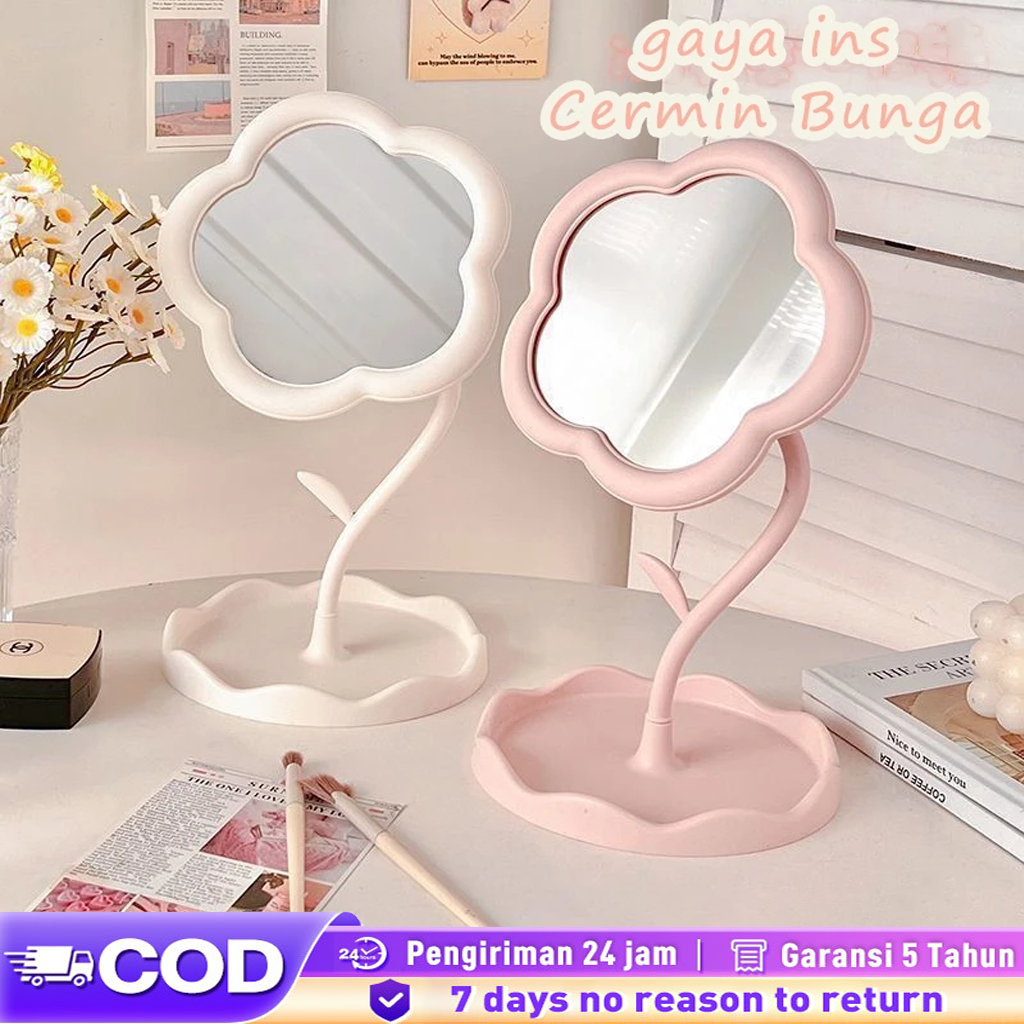 Cermin Bunga Cermin Dinding Berputar untuk Makeup Cermin Estetika Cermin Estetika dengan Stand Cermin Bunga Kaca Meja Rias