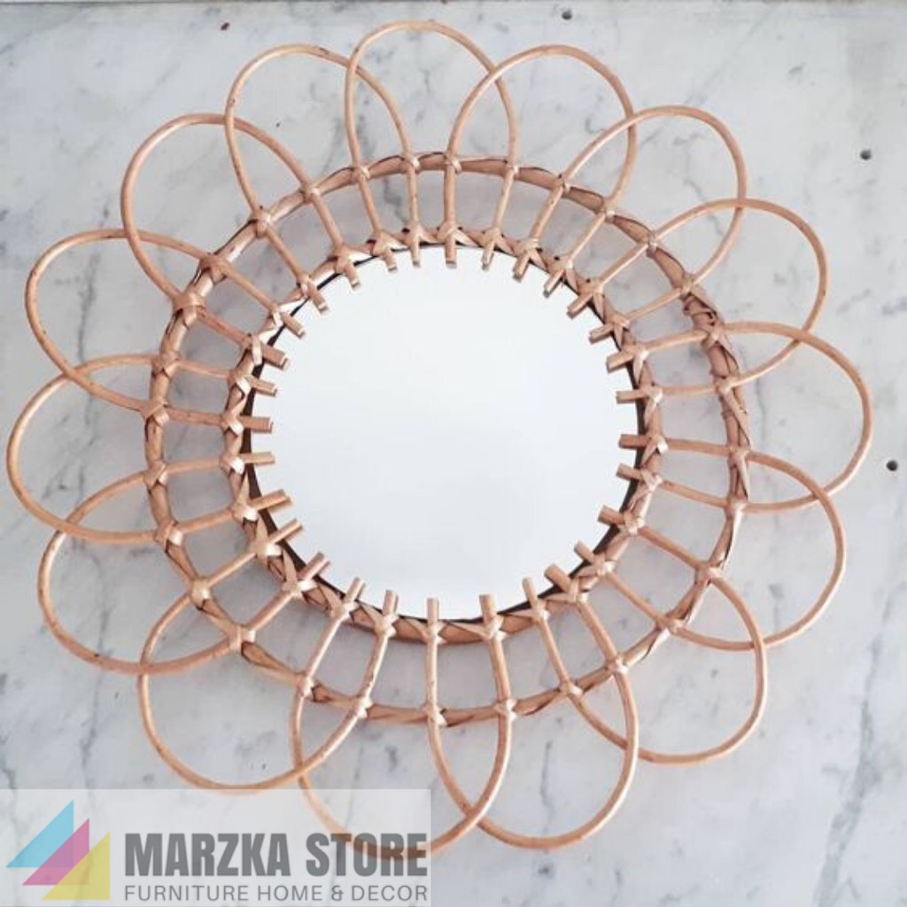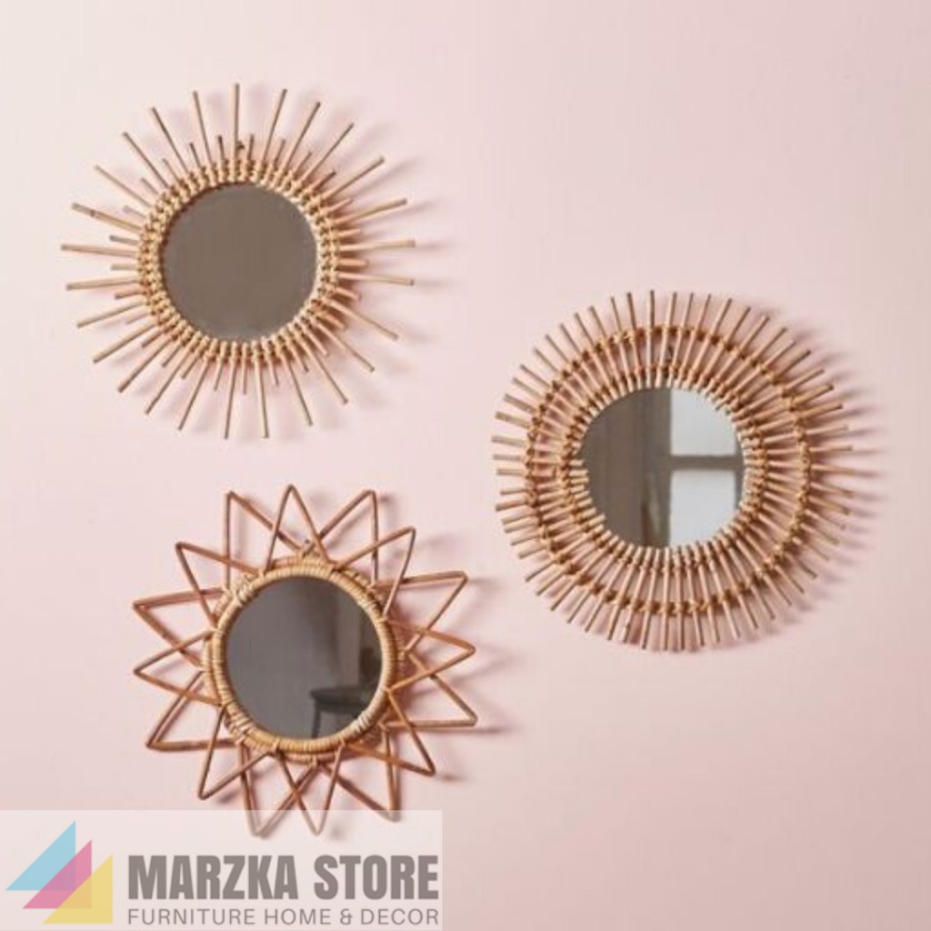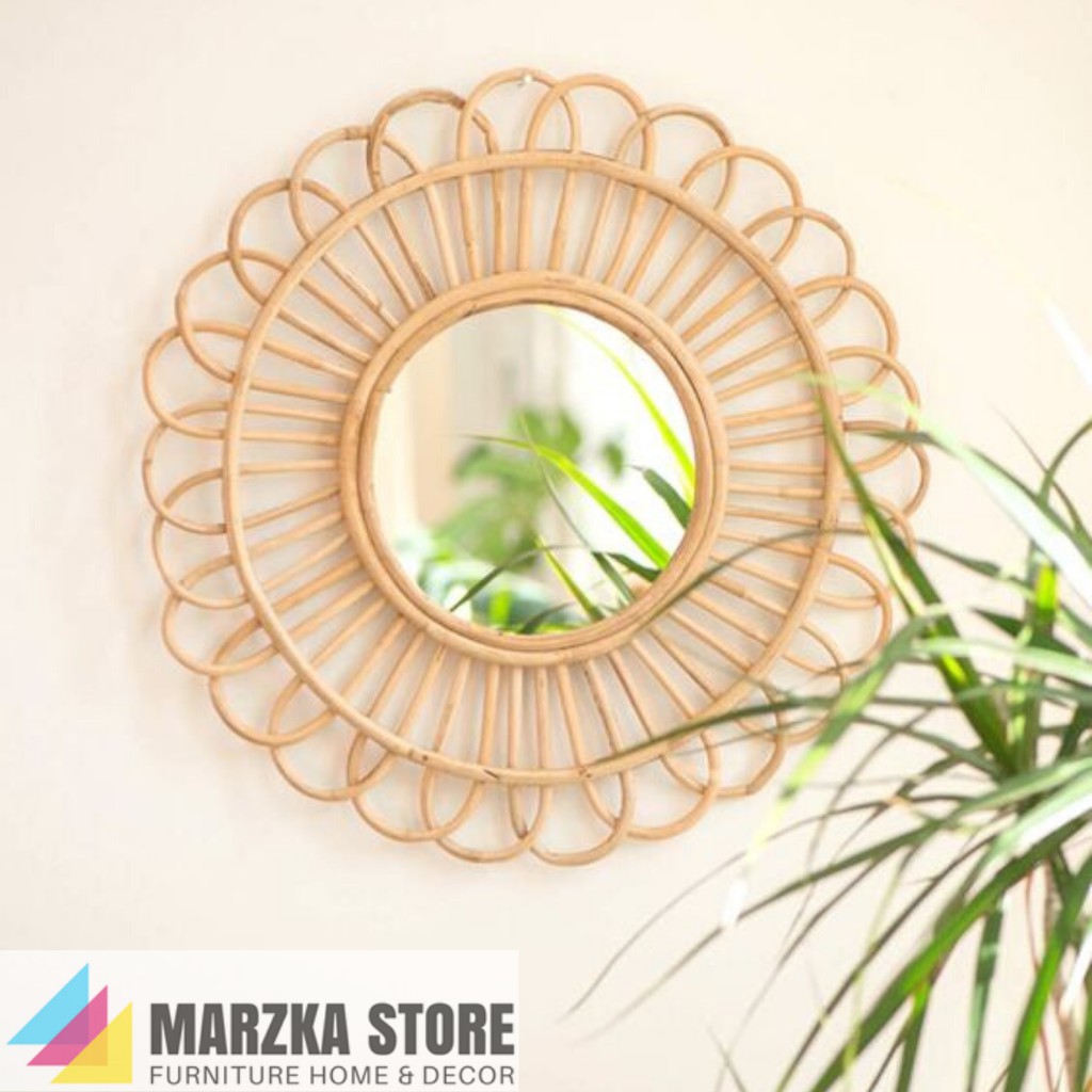 Cermin Dengan Bingkai Anyaman Rotan / Cermin Hias / Cermin Unik / Hiasan Dinding