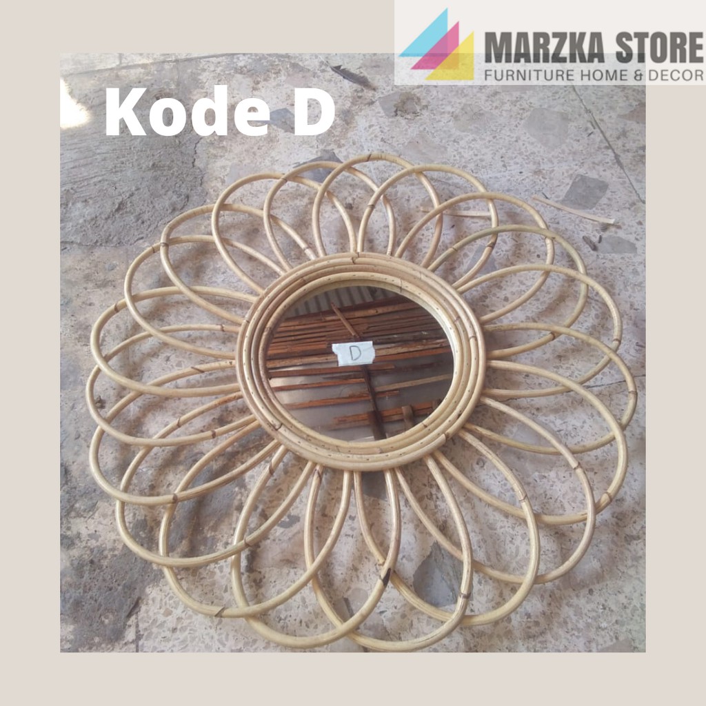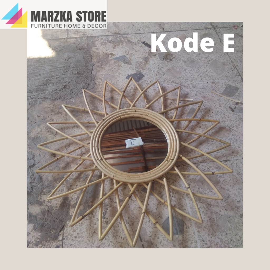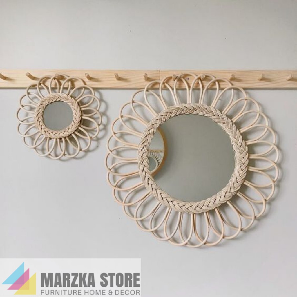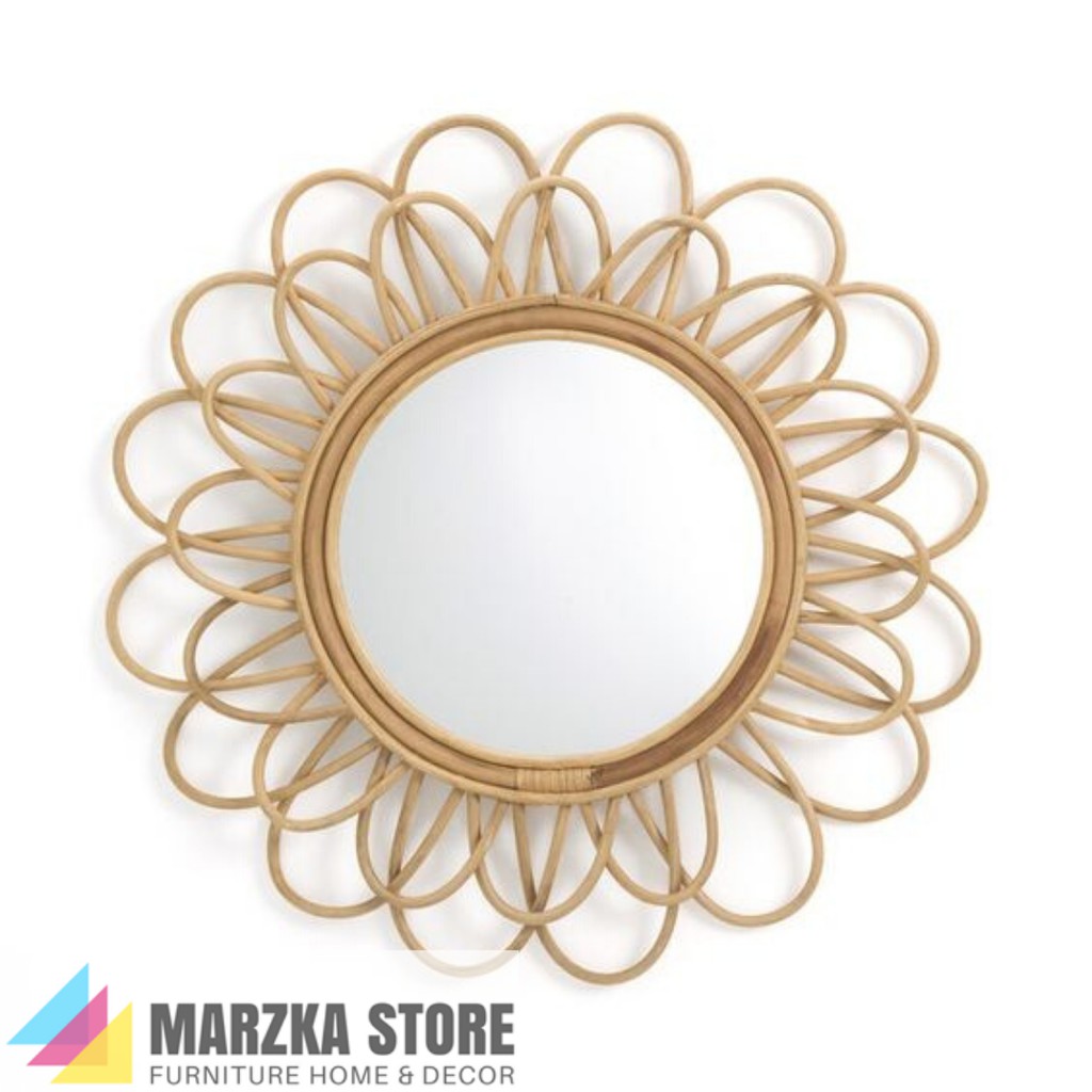 Cermin Dengan Bingkai Anyaman Rotan / Cermin Hias / Cermin Unik / Hiasan Dinding