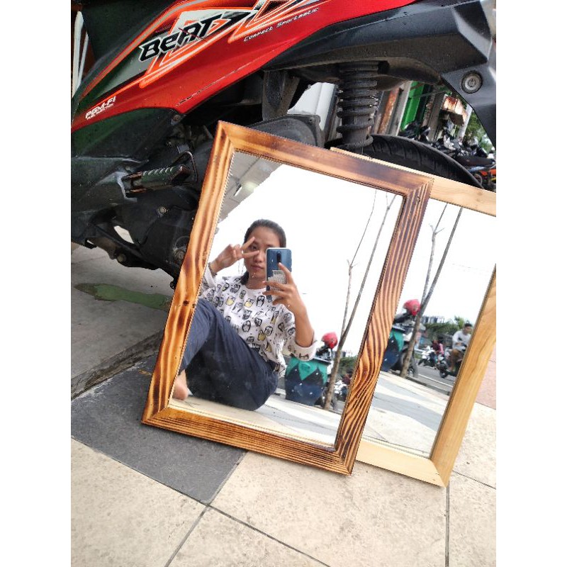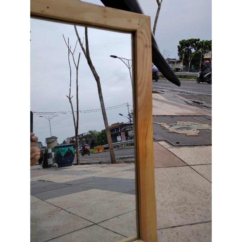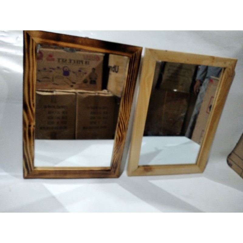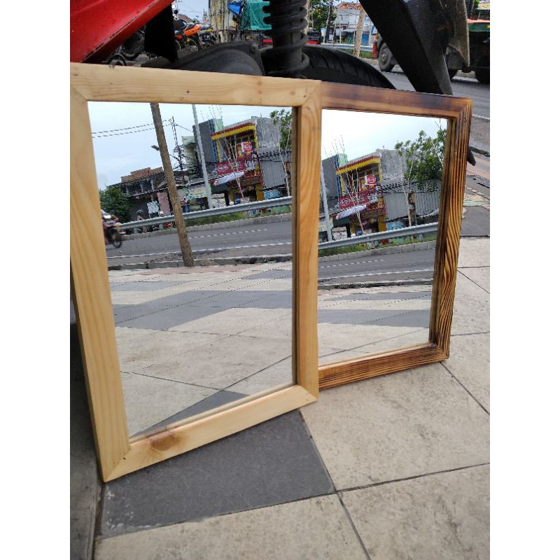 Cermin Dinding Minimalis Frame Kayu Ukuran 34 CM X 46 CM Cermin Kotak Bisa Gantung Dinding
