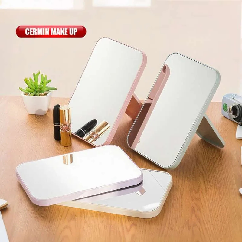 Beauty Mirror Cermin Lipat Persegi Kaca Rias Make Up Portable Dengan Motif Animals Bentuk Bulat Kotak Lucu Love Pegangan Gagang Imut Karakter Rabbit Telinga Kucing Genggam Polos Warna Warni Soft Pastel