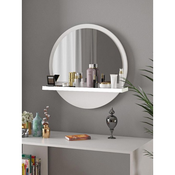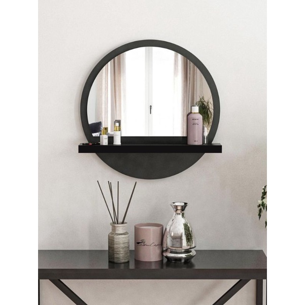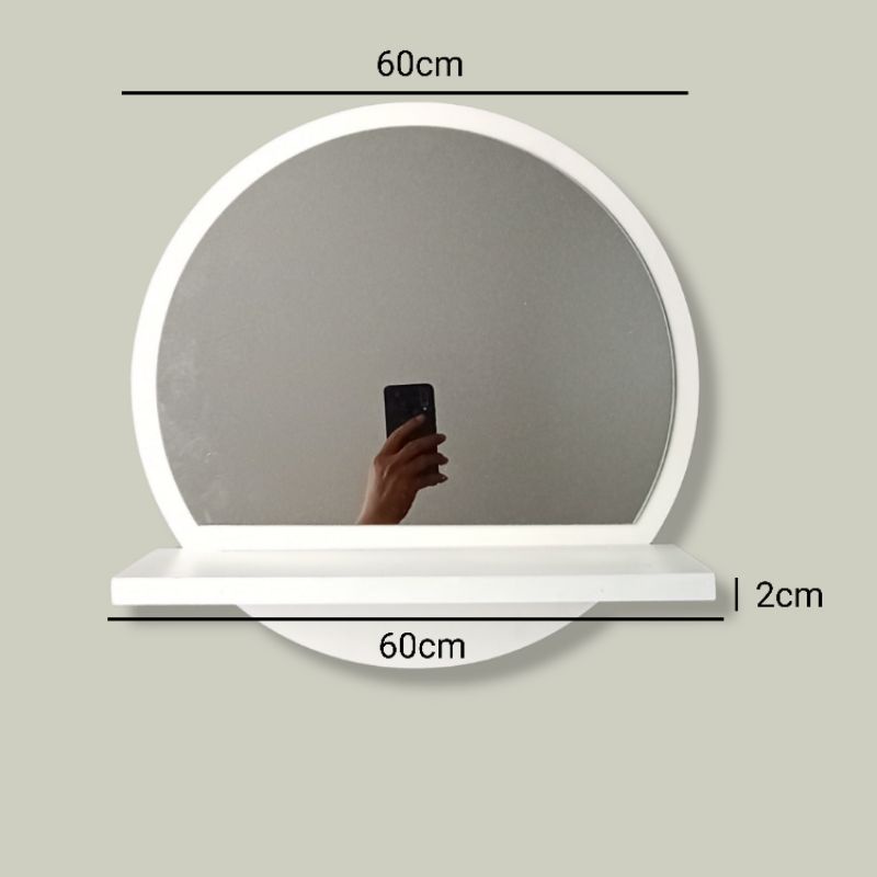 Cermin Rak Kayu Diameter 60cm/ Cermin dinding/Cermin Aesthetic