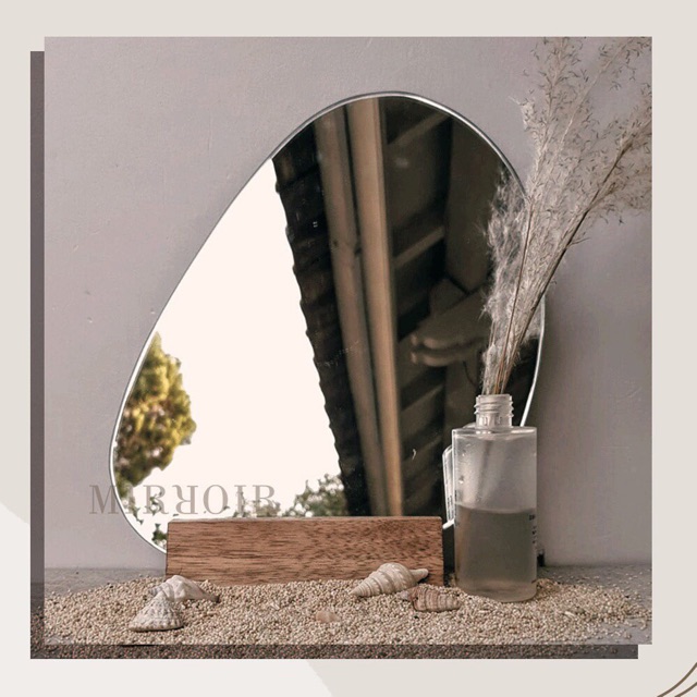 Cermin aesthetic cermin meja cermin estetik penyangga kayu/ luxe