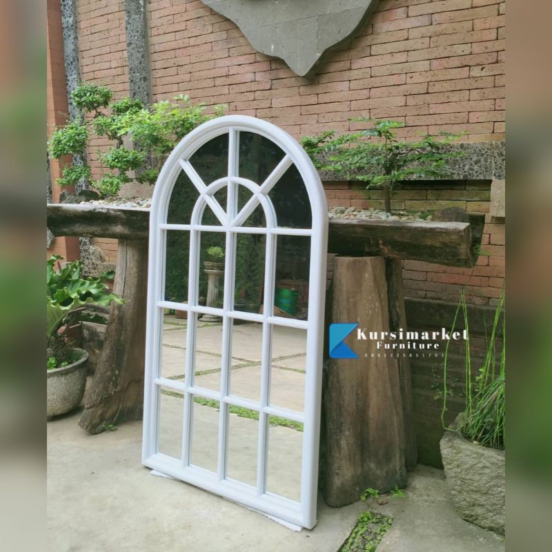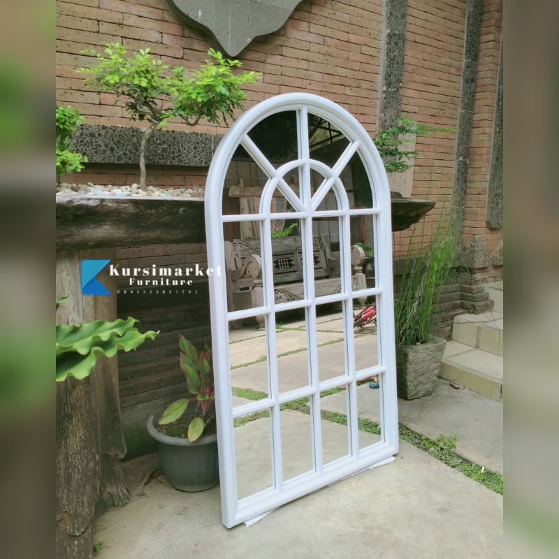 Cermin badan termurah figura tembok model jendela cermin shabby hias warna putih duco furniture