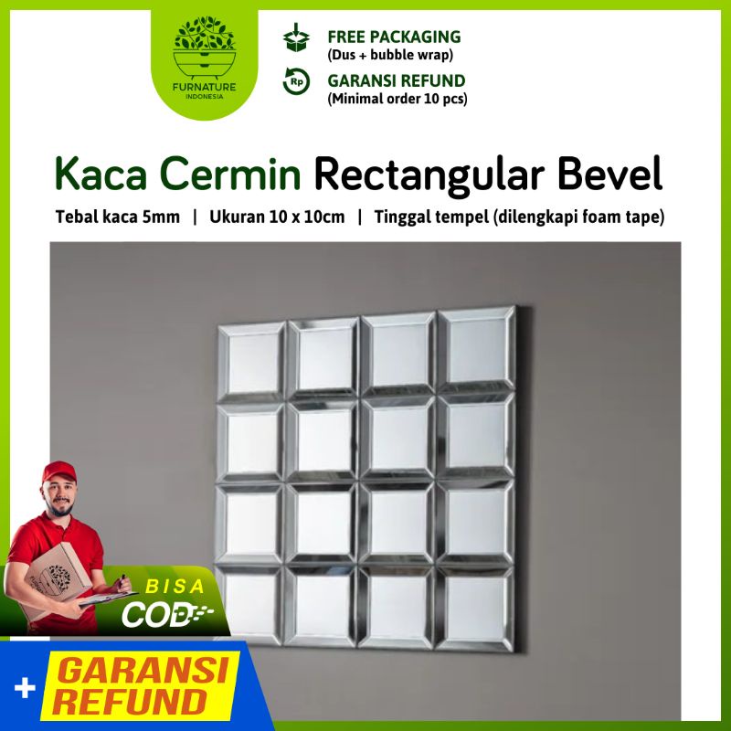 Cermin kaca - kaca cermin Bevel - cermin hiasan dinding 10 x 10 cm tebal 5ml