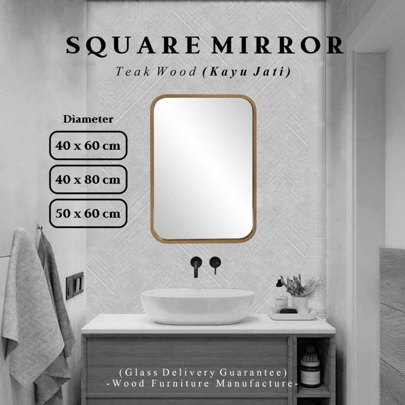 Woodelta - Cermin Persegi Kayu Jati 60x40 Cm Dan 80x40 Cm Square Mirror