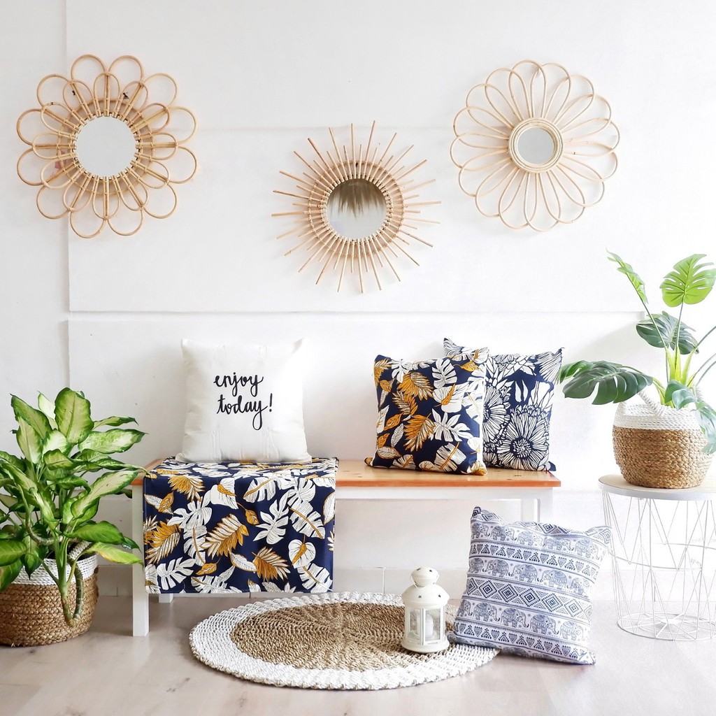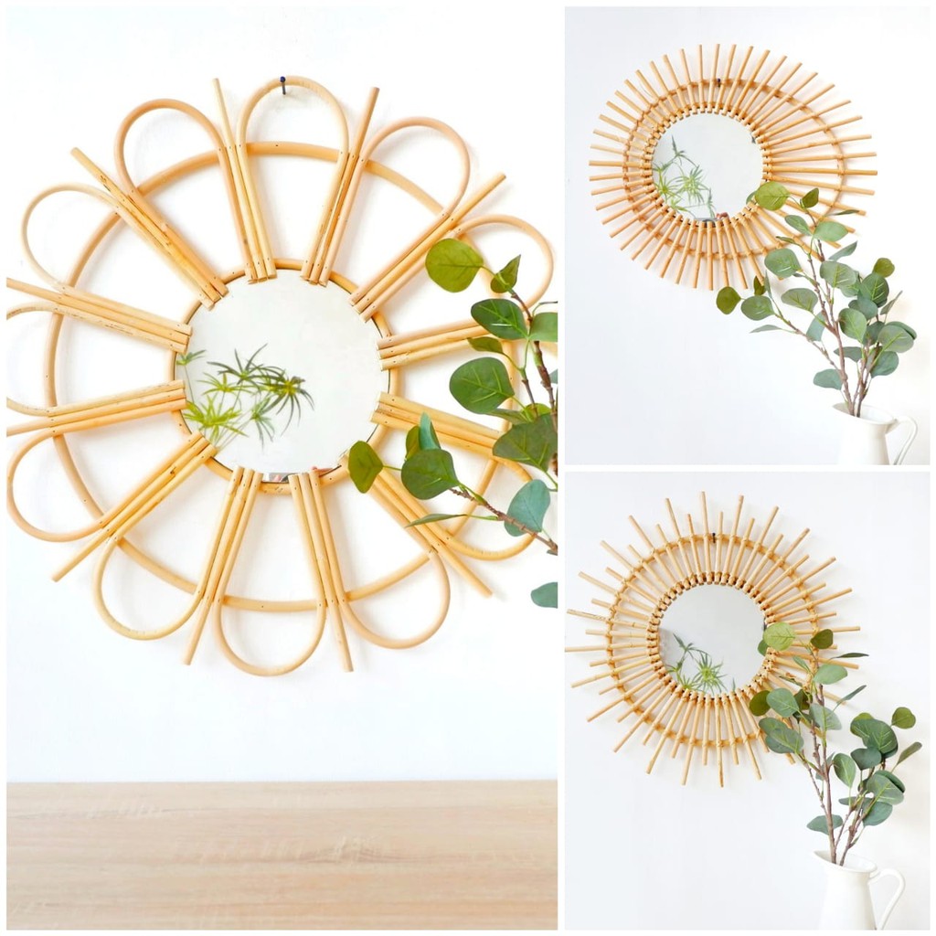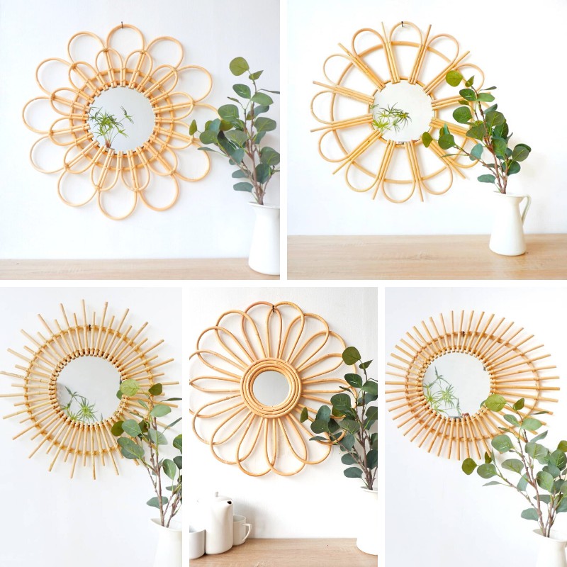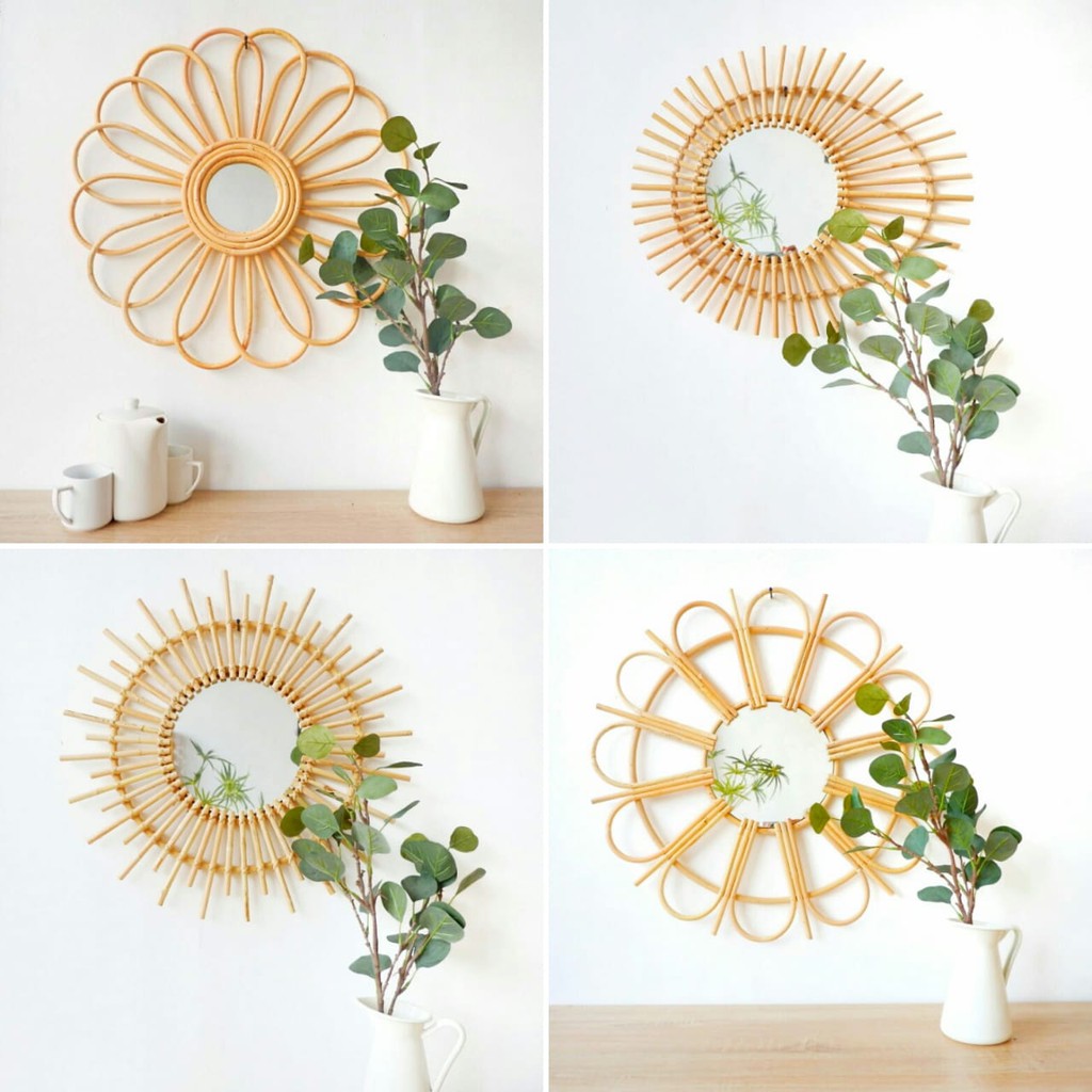 Cermin Rotan Besar - Cermin Kaca Unik Kerajinan Rotan Dekorasi Dinding Estetik