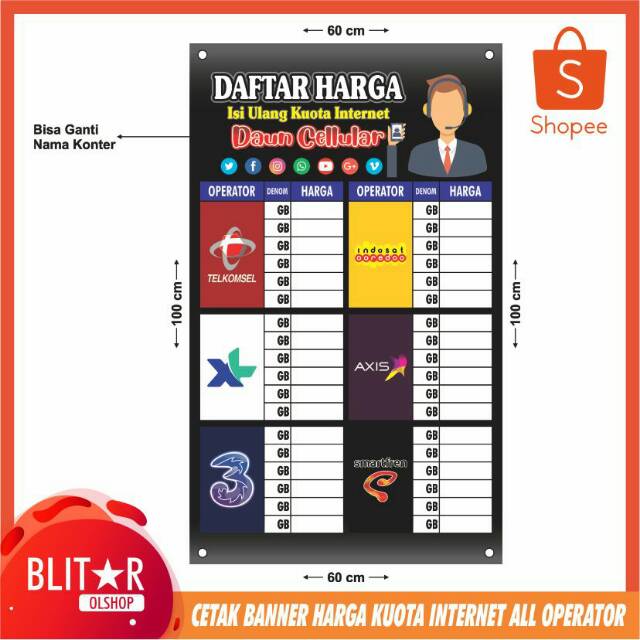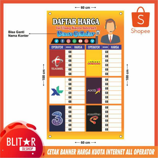 Cetak Banner Harga Kuota Internet All Operator Ukuran 60x100