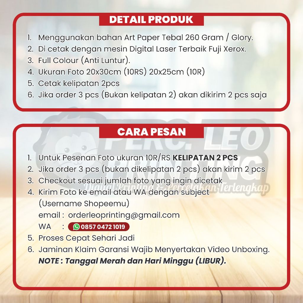 Cetak Foto Ukuran 10R 10RS A4 Kertas Glory High Quality Print Full Colur Laserjet