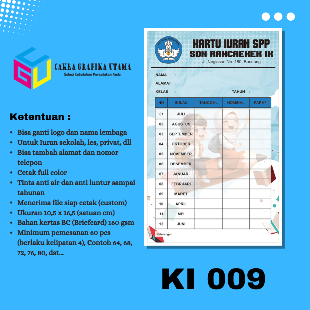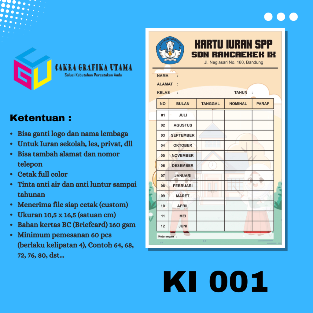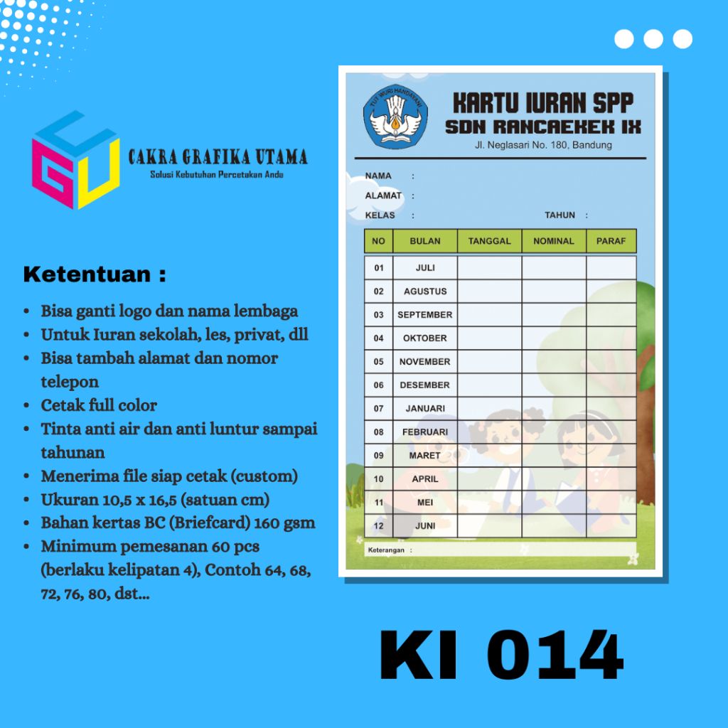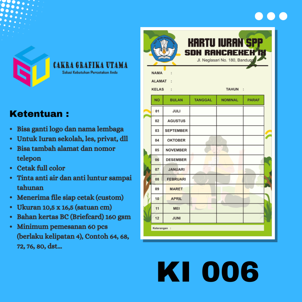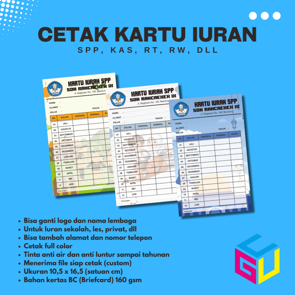 Cetak Kartu Iuran SPP Iuran Kas Kartu Iuran Les Kartu Iuran