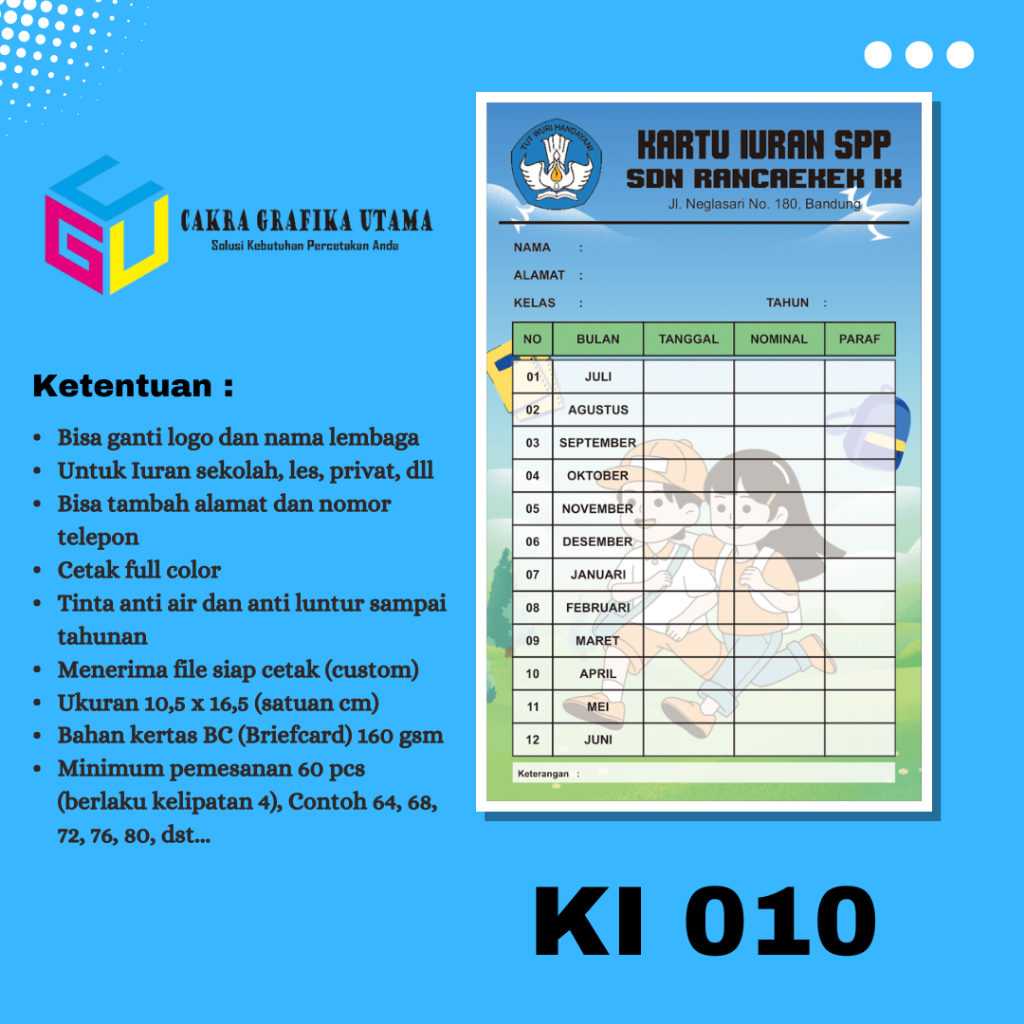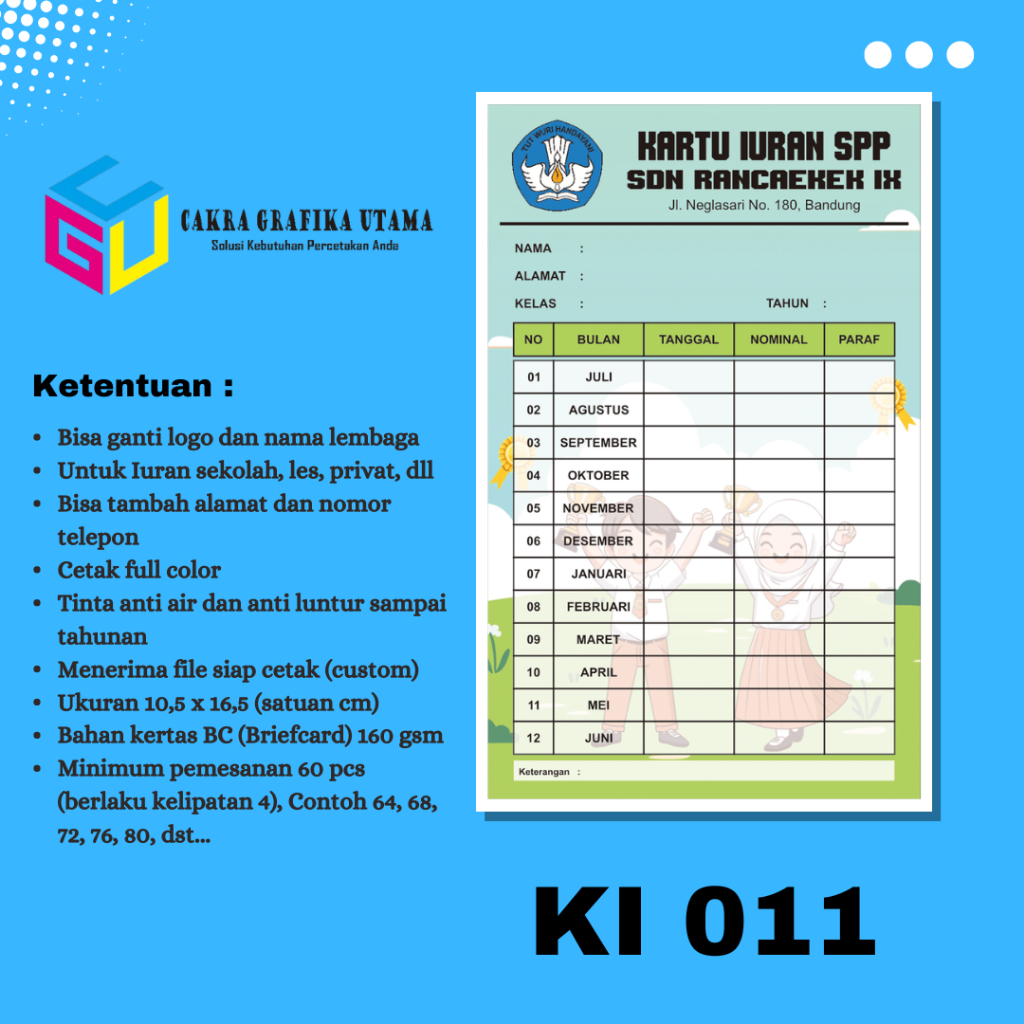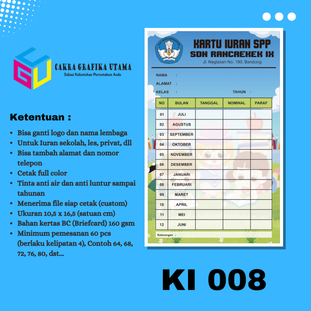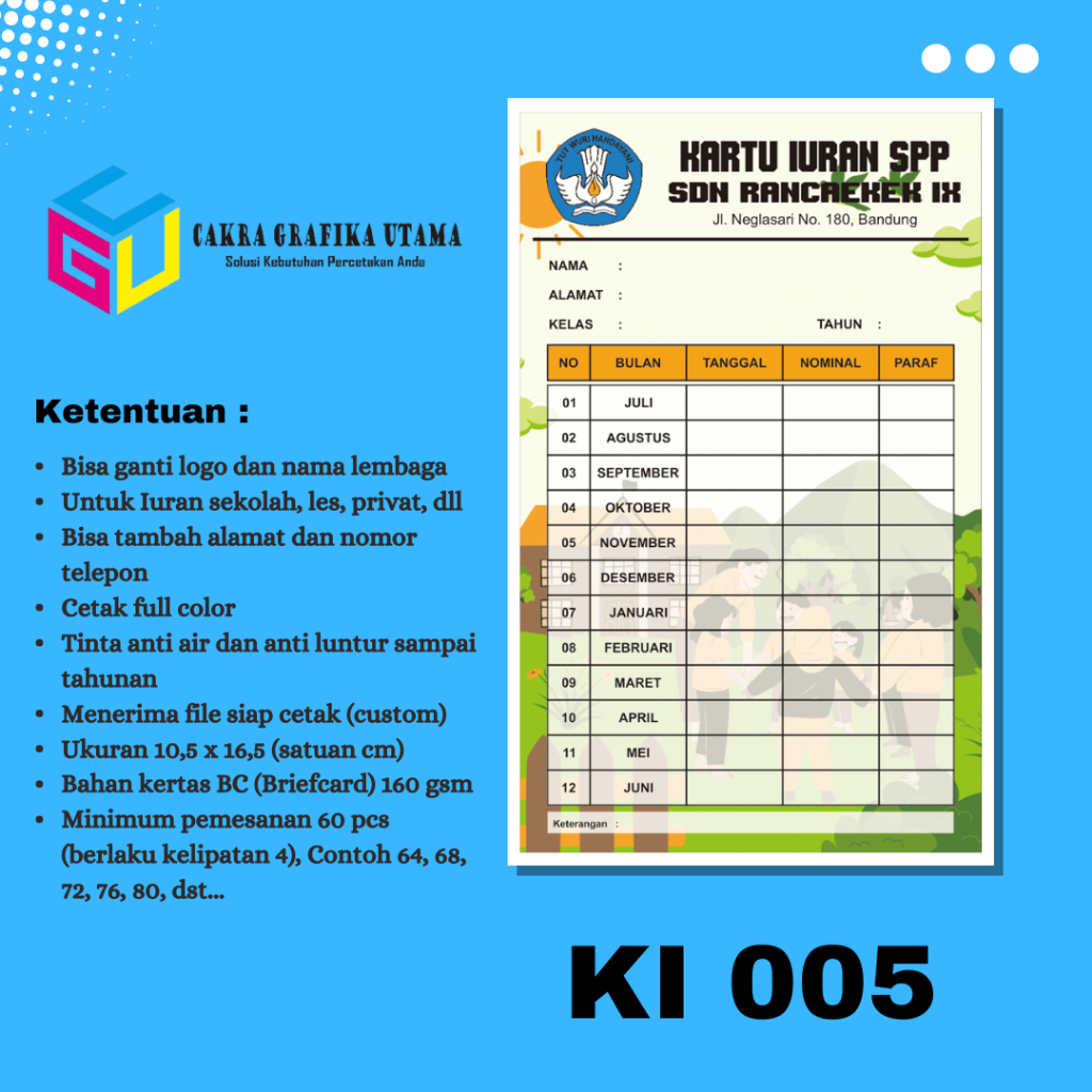 Cetak Kartu Iuran SPP Iuran Kas Kartu Iuran Les Kartu Iuran