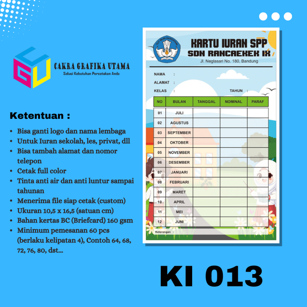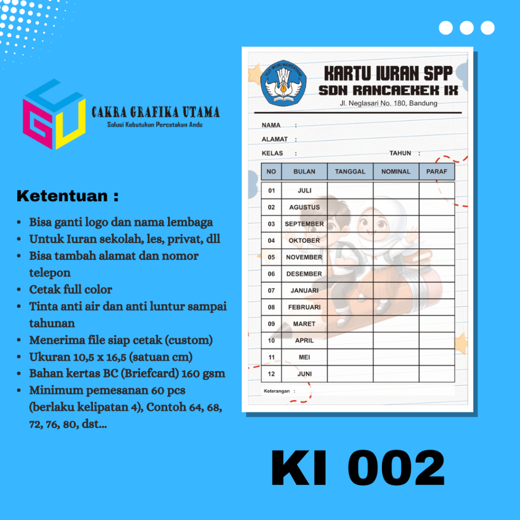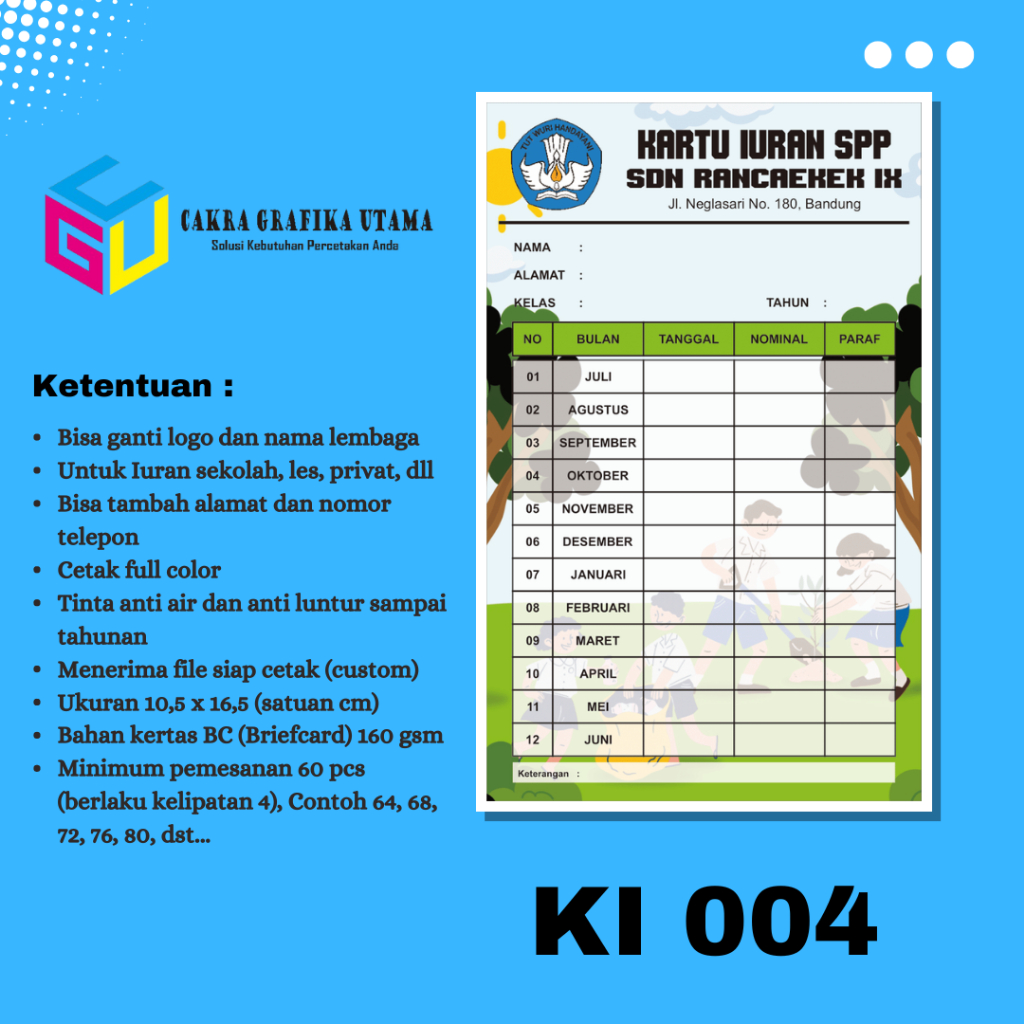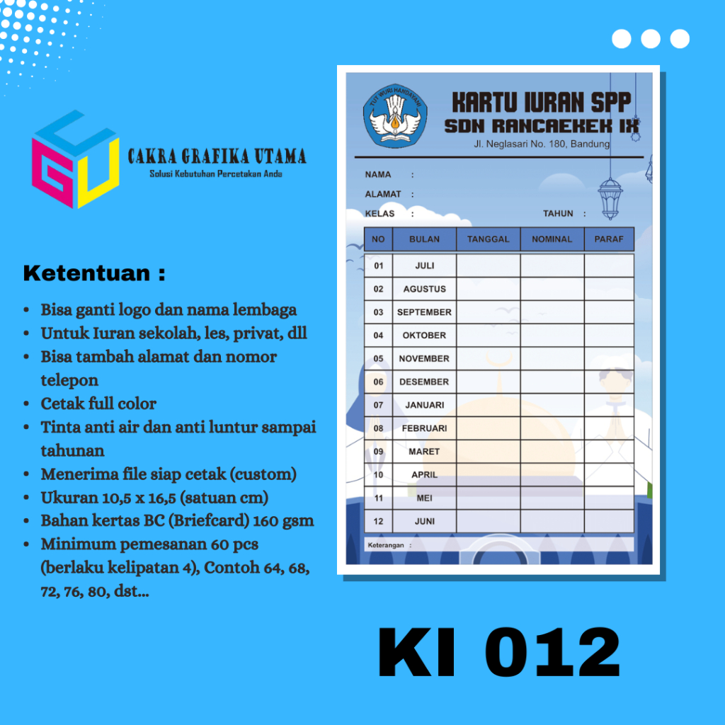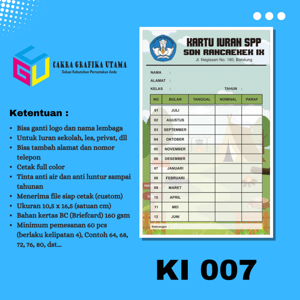 Cetak Kartu Iuran SPP Iuran Kas Kartu Iuran Les Kartu Iuran