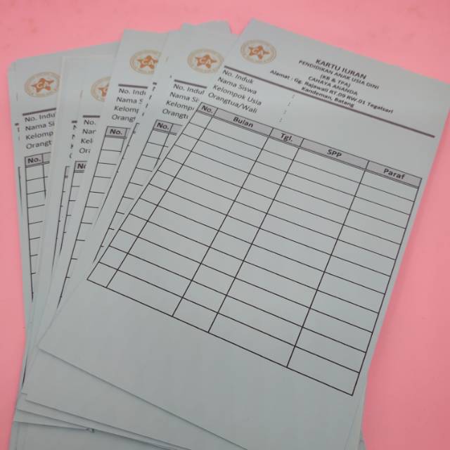 Cetak Kartu SPP Sekolah Lembaran