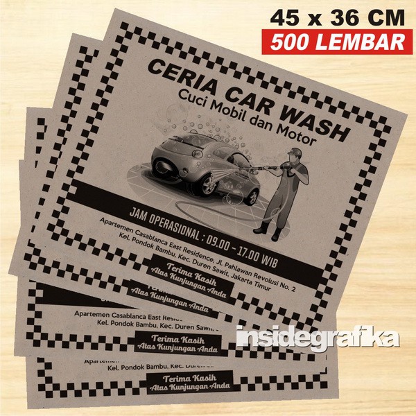 Cetak Kertas Alas Kaki Cuci Mobil Pijakan Car Wash Cucian Print Paper Carwash Oto Kraft 36 x 45