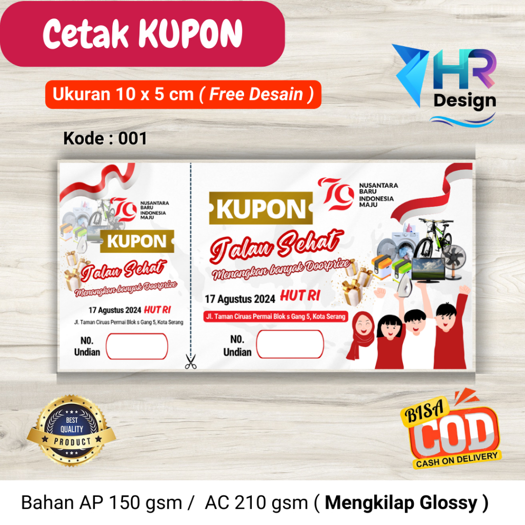 Cetak Kupon Doorprize Hadiah 17 Agustus Free Desain / Kupon Jalan Sehat / Kupon HUT RI / Kupon Lomba / Kupon Jalan Santai