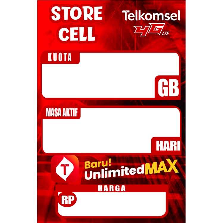 Cetak Label Harga Paket Data Potrait / Etalase Konter Murah / Label Voucher / Label Paket Data