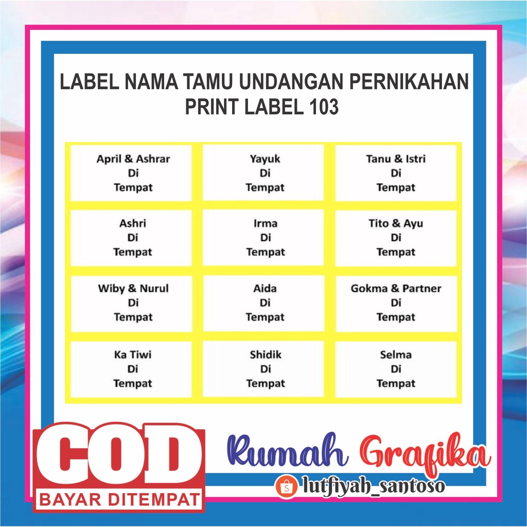 Cetak Label Nama Tamu Undangan Pernikahan / Print Label 103 untuk Undangan
