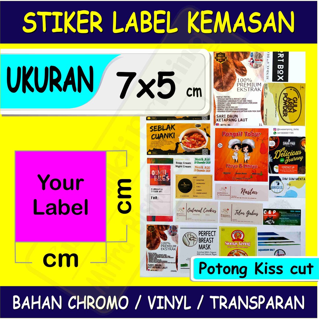 Cetak Label Stiker, 7x5 cm, Chromo / Vinyl / Transparan, Print Label