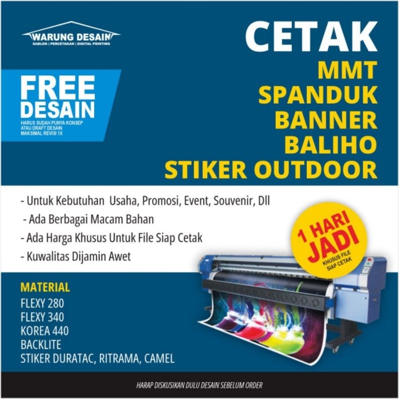 Cetak MMT, Banner, Spanduk. Sehari jadi!!