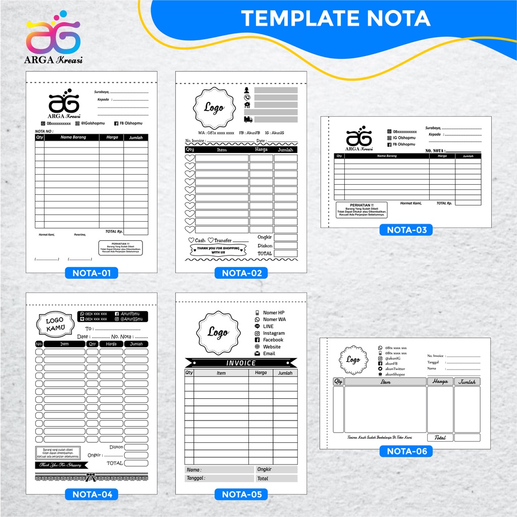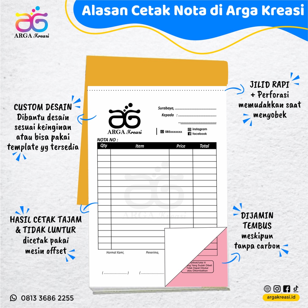 Cetak Nota 1 Ply Custom 1 Rim Kertas HVS / Kertas Buram CD Kwitansi Toko Bon Kuitansi Invoice Faktur Form Rumah Sakit