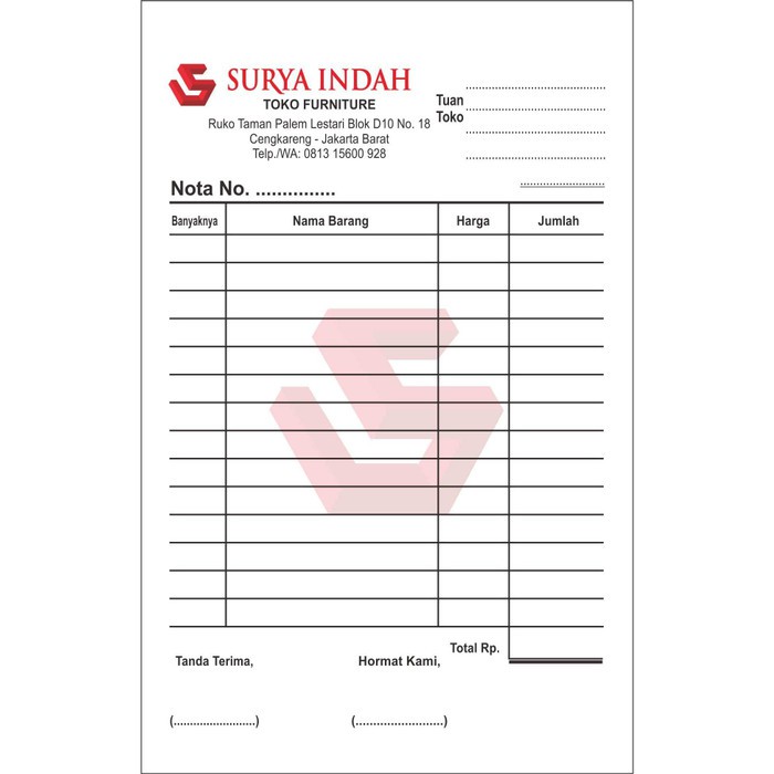 Cetak Nota NCR 1/4 Folio 2 rangkap, 2 warna