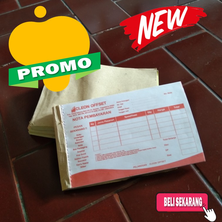 Cetak Nota/Nota Custom/Nota Kontan/Nota Olshop/Nota Murah 5Ply Ukuran 1/6 Folio Block Lem FreeDesign