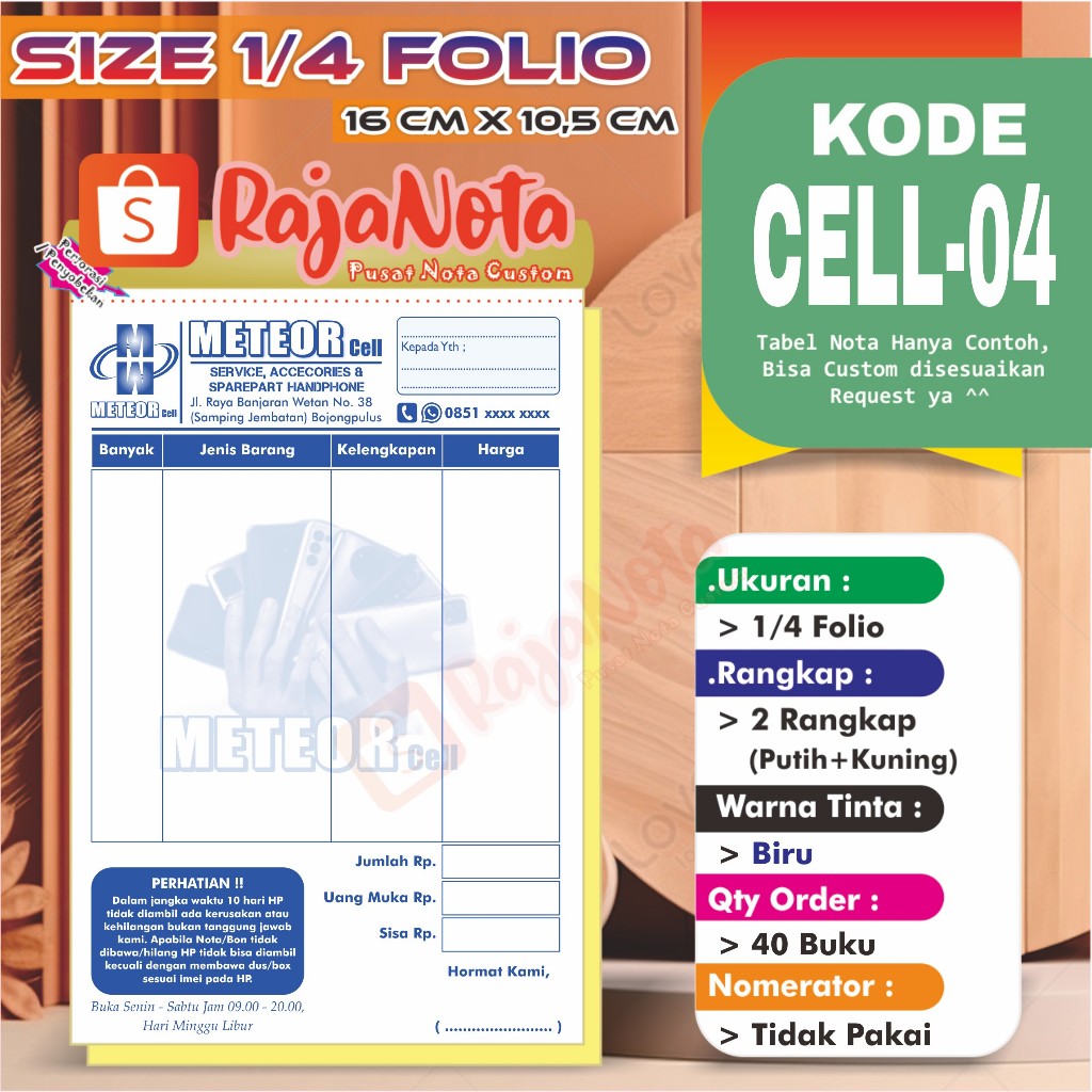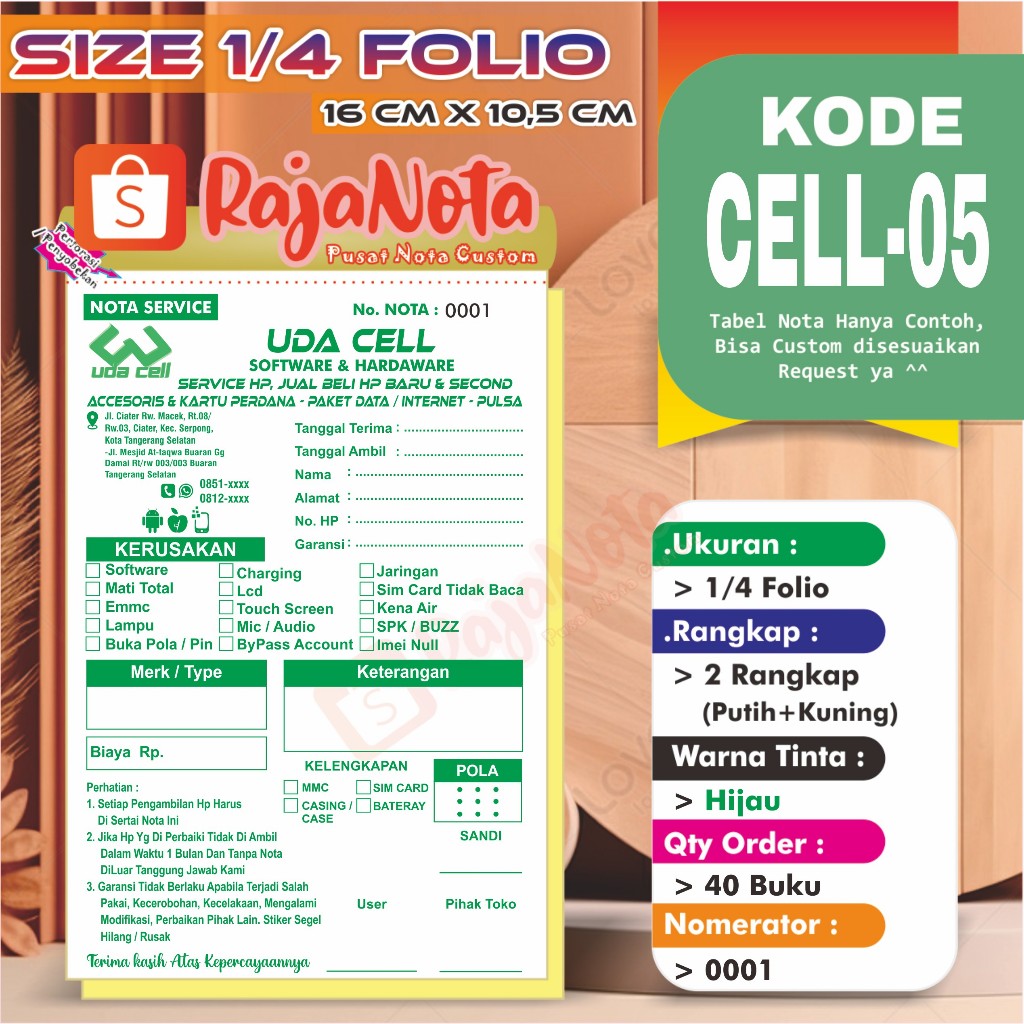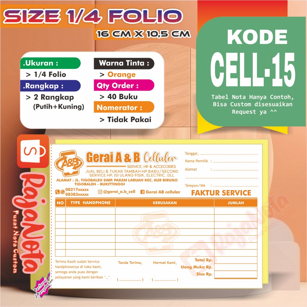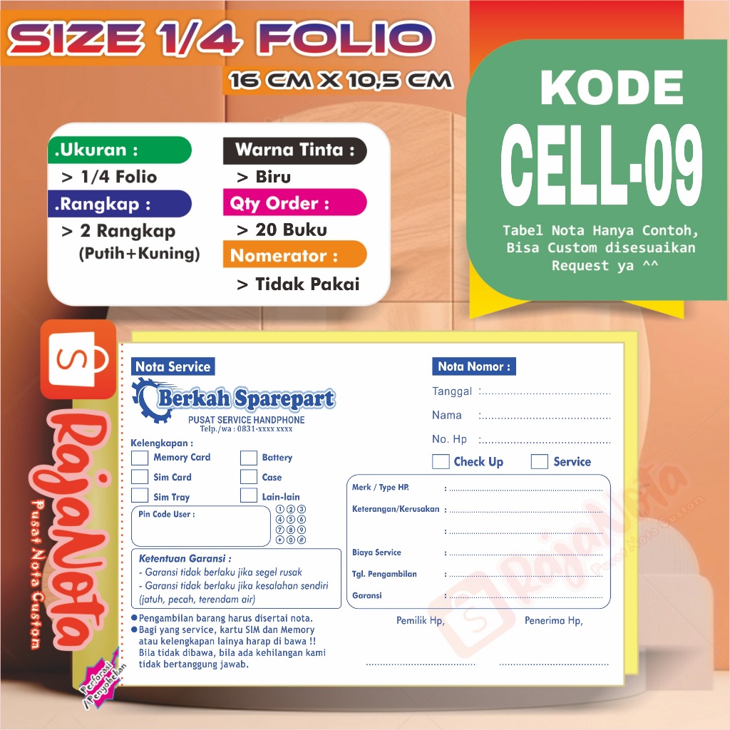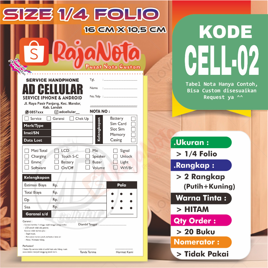 Cetak Nota Konter Servis HP Cellular Custom Request Nama Toko Sendiri 2 rangkap 100 Bisa Desain