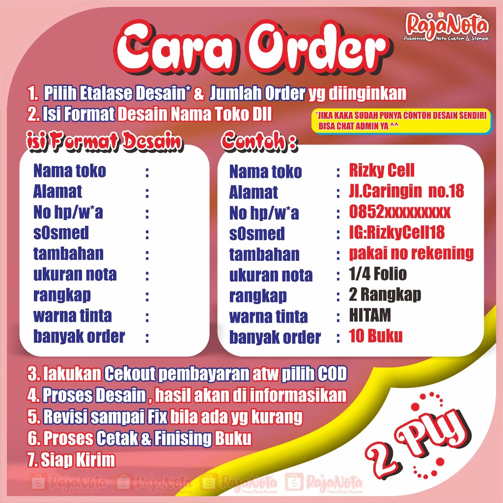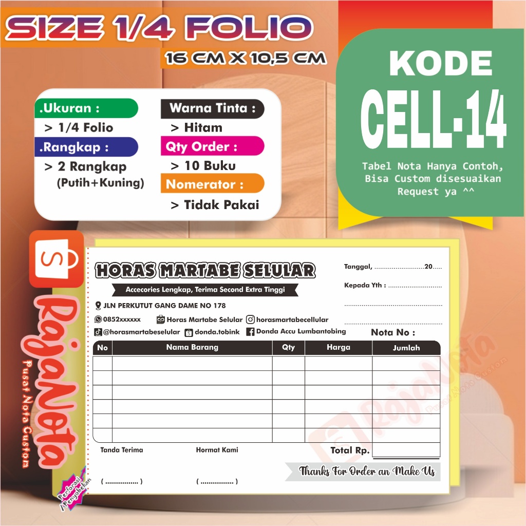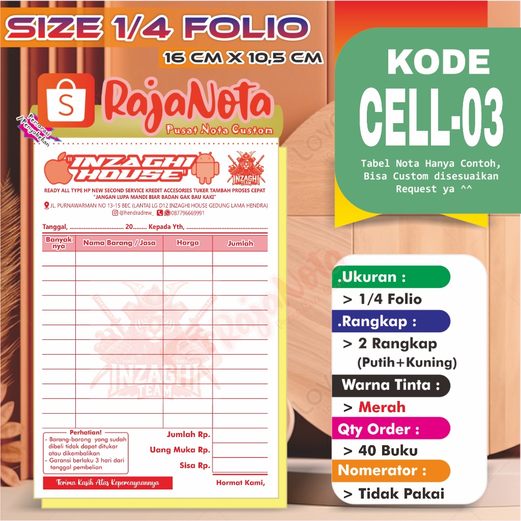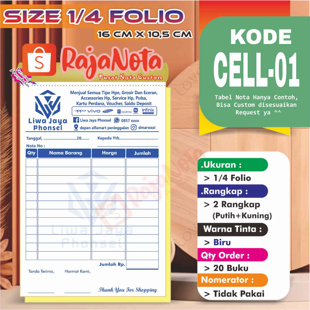 Cetak Nota Konter Servis HP Cellular Custom Request Nama Toko Sendiri 2 rangkap 100 Bisa Desain