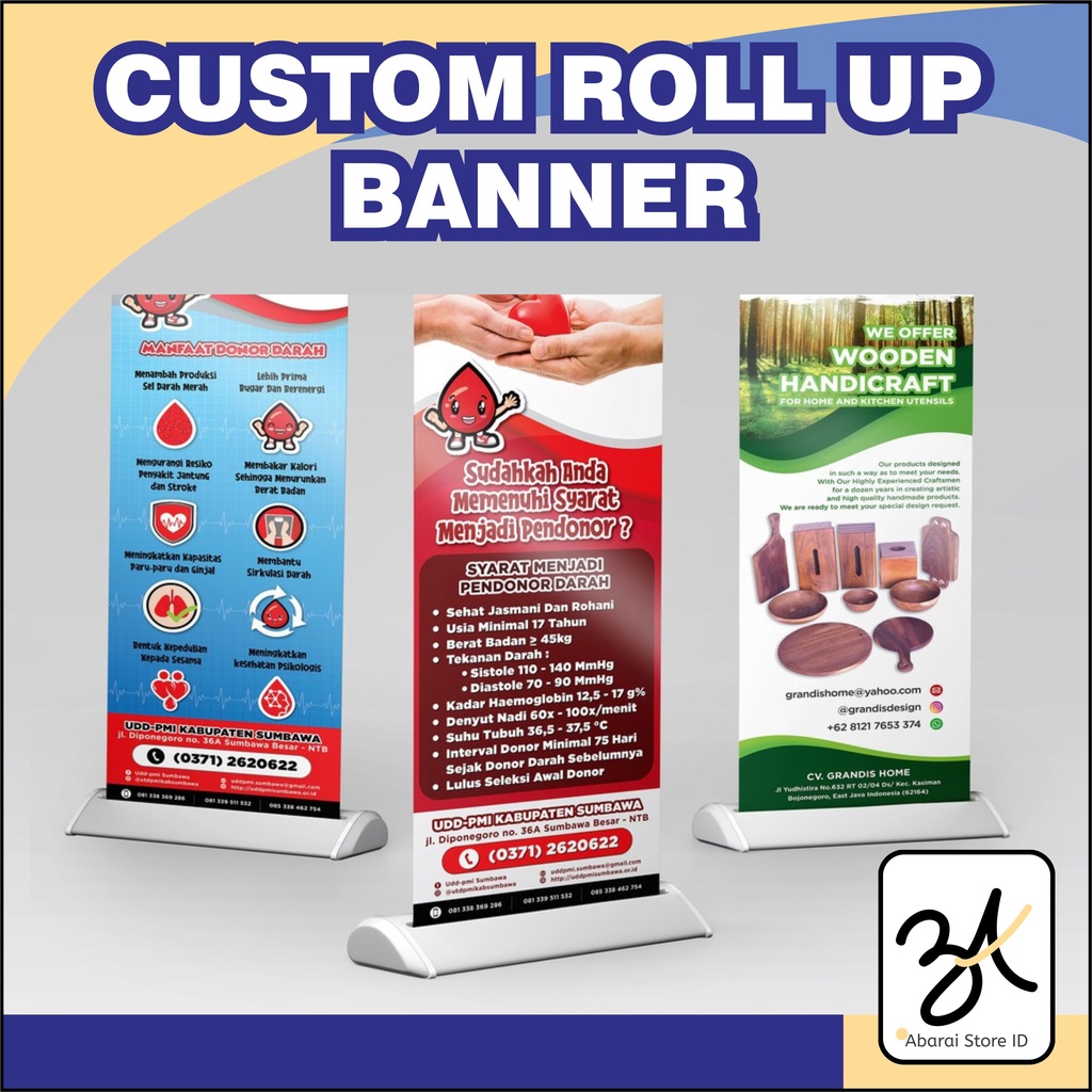 Cetak Roll Up Banner Custom Ukuran 60x160cm / Bahan Eco 440 / Banner Usaha / Wisuda