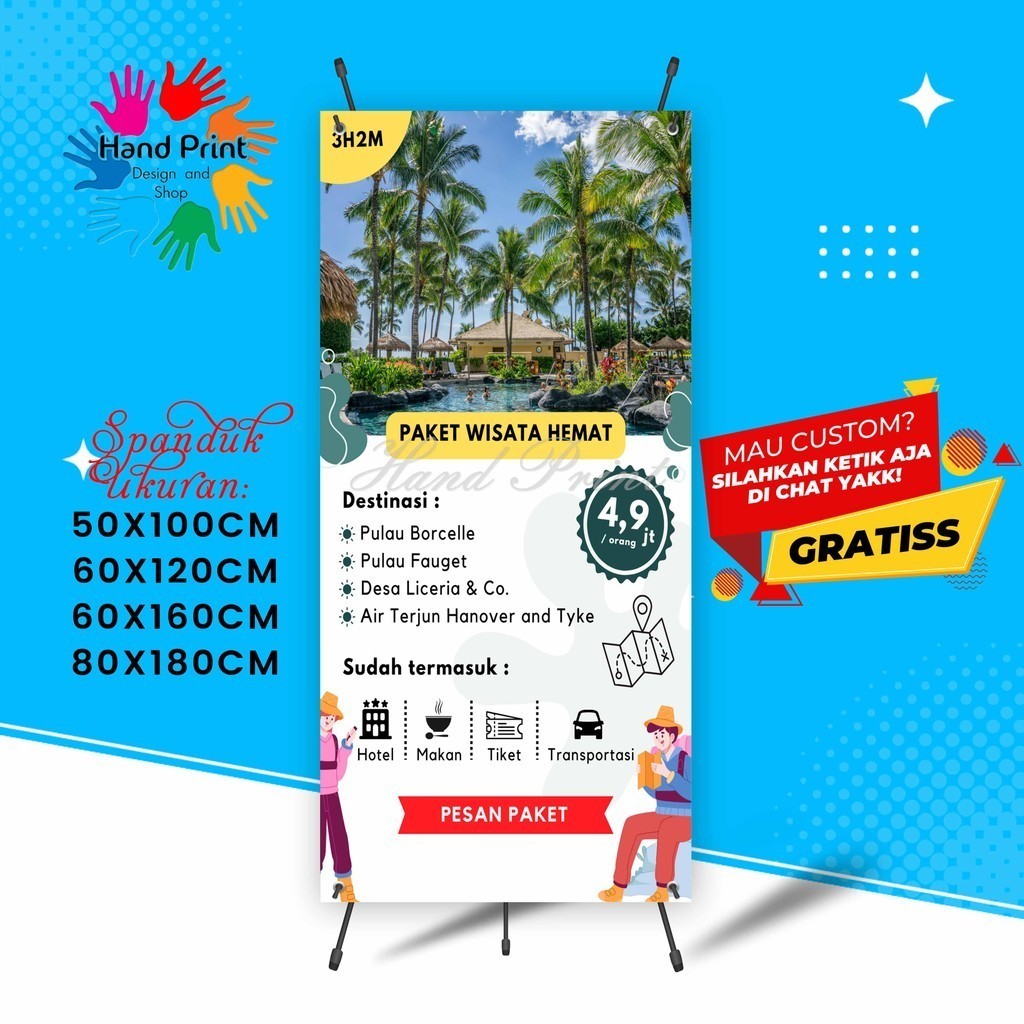 Cetak Spanduk Banner Liburan Wisata Travel Jalan - jalan B MMT Spanduk Custom 60x160