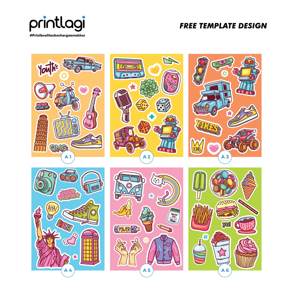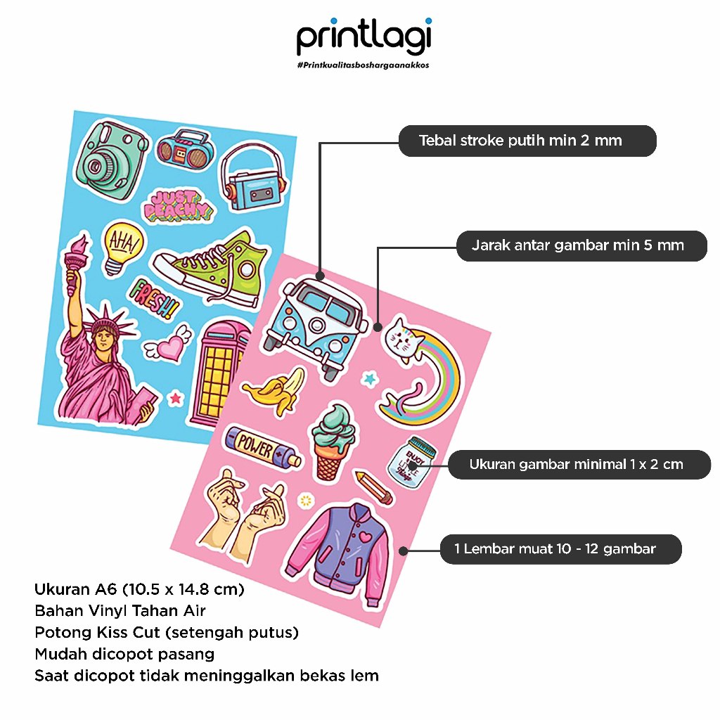 Cetak Sticker Aesthetic / Sticker Sheet Pack / Stiker Custom Laptop HP / Kiss Cut Ukuran A6 & A5