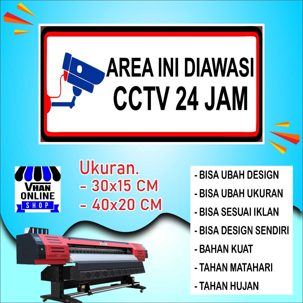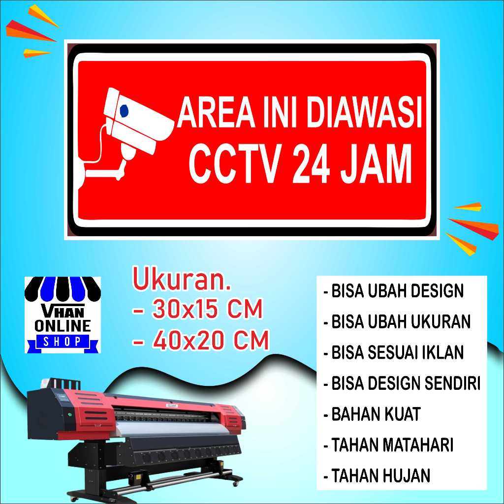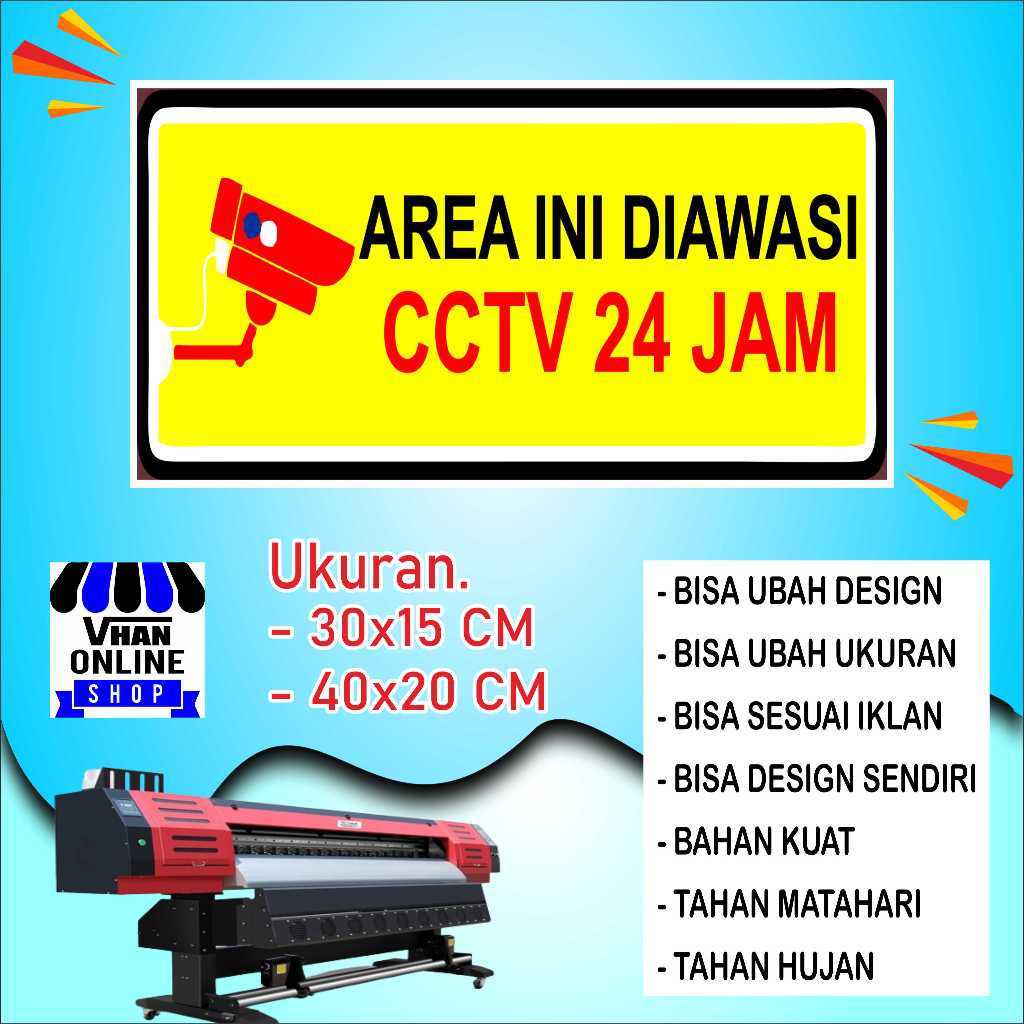 Cetak Sticker Tulisan Di awasi CCTV Bahan Kuat Hijau