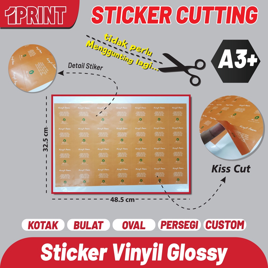 Cetak Sticker Vinyl A3+ | Print Stiker Vinyl A3 | Glossy/Doff/Transparant | Print + Kiss Cut