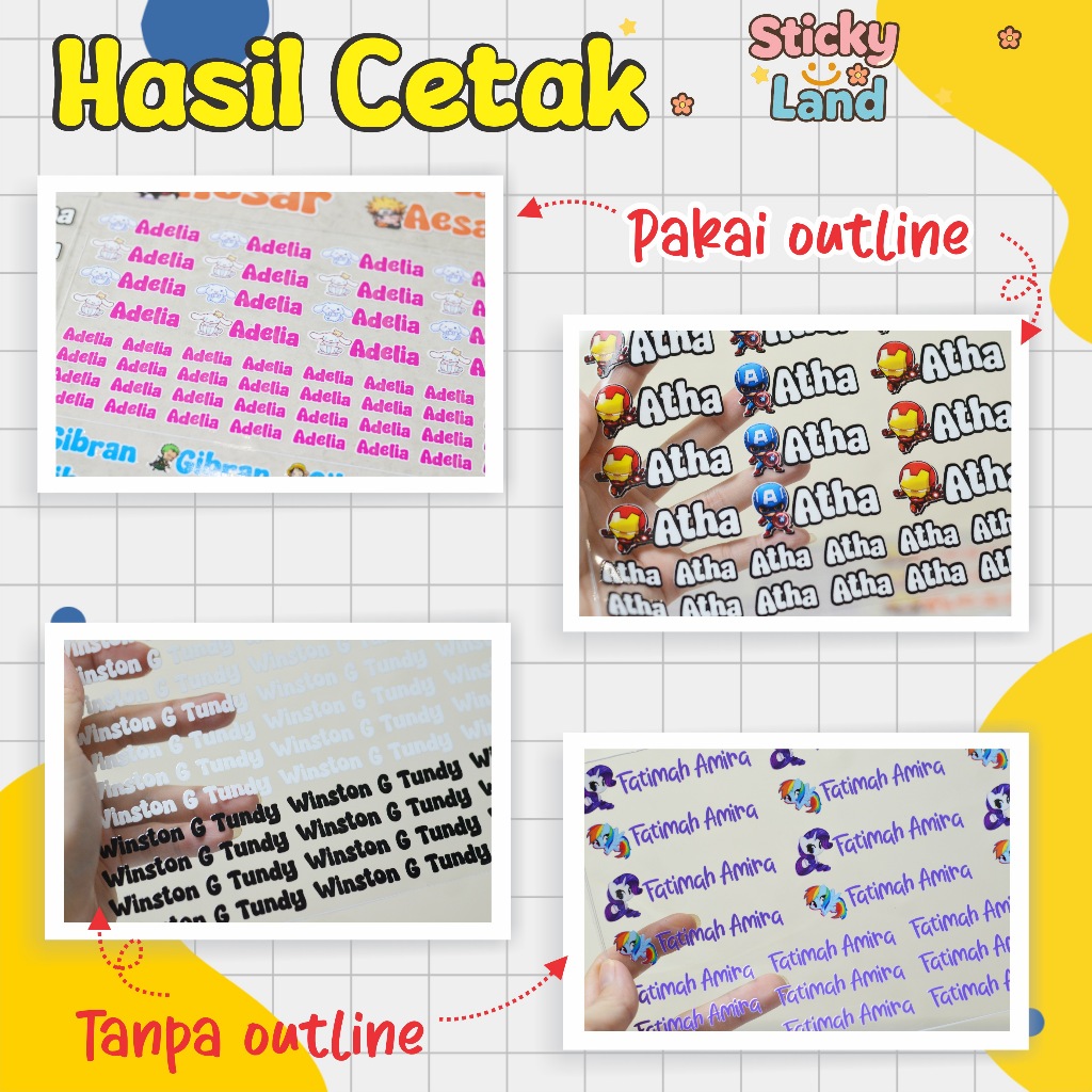 Cetak Stickers UV DTF - Label Nama - Sticker Nama bisa tempel dimedia mana saja