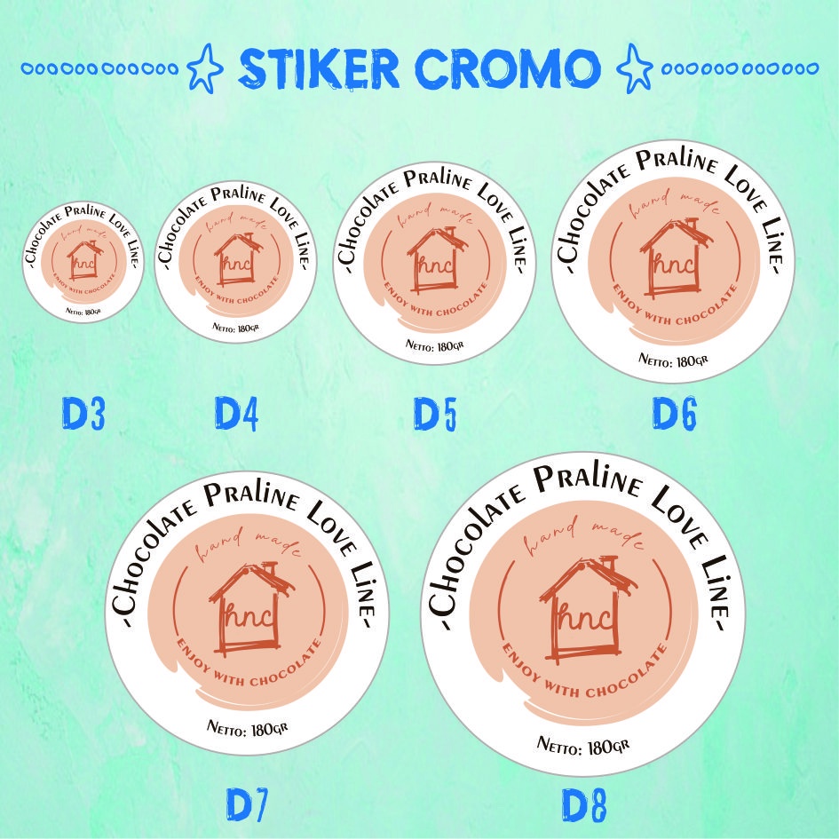 Cetak Stiker Cromo Lingkaran Minimal Order Lebih Sedikit (Stiker Kemasan Label Olshop Merk Kue, Snack, Bakery, makanan dan minuman)