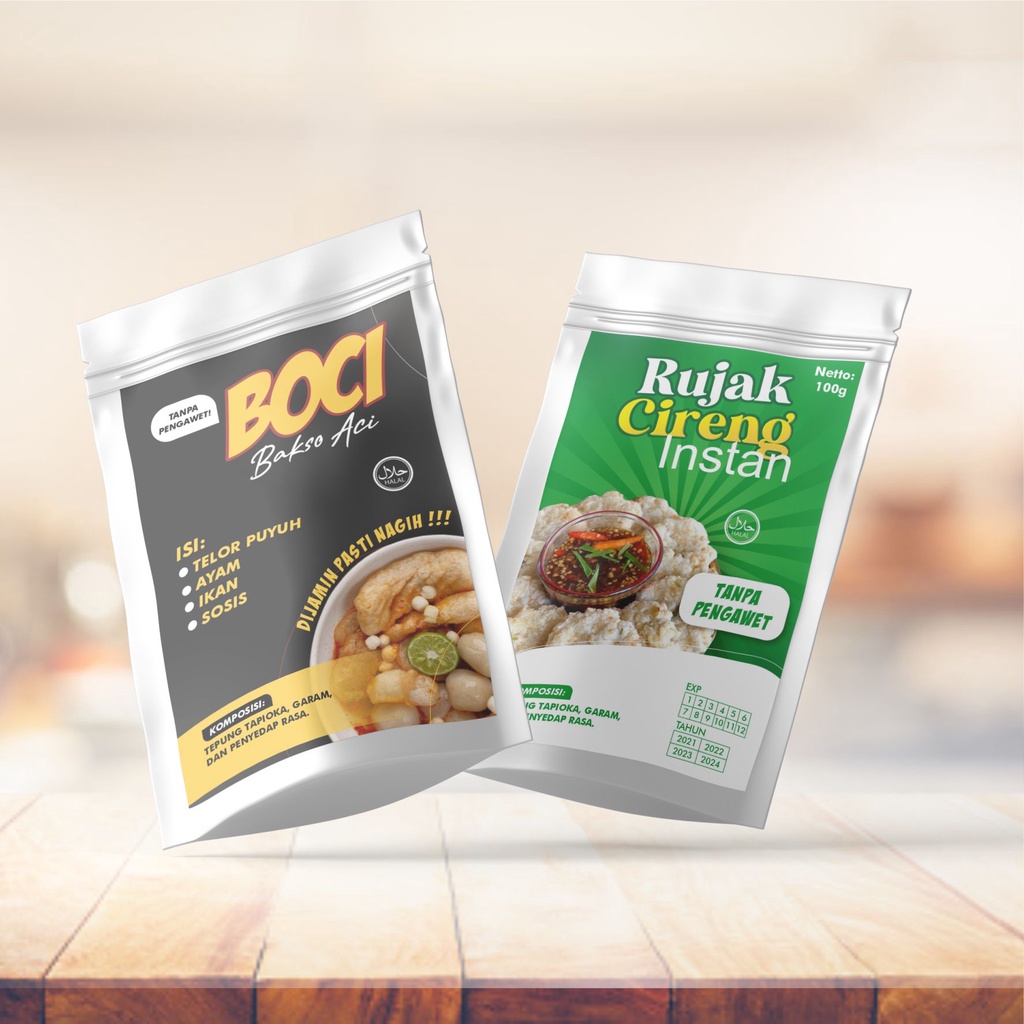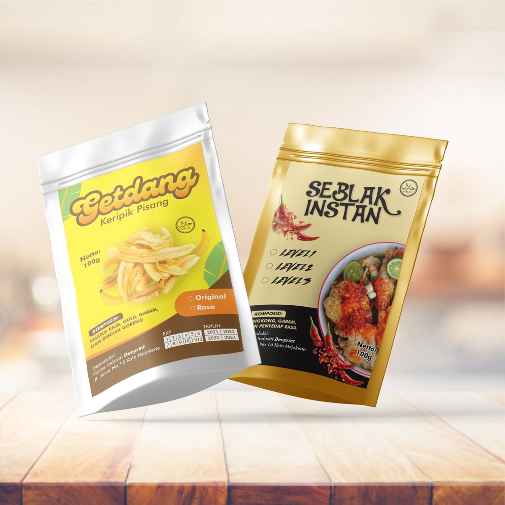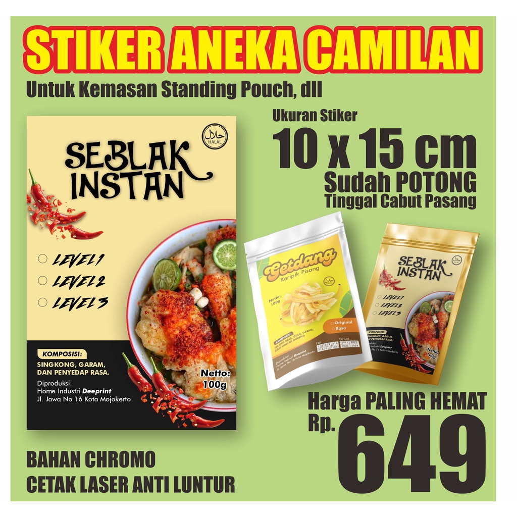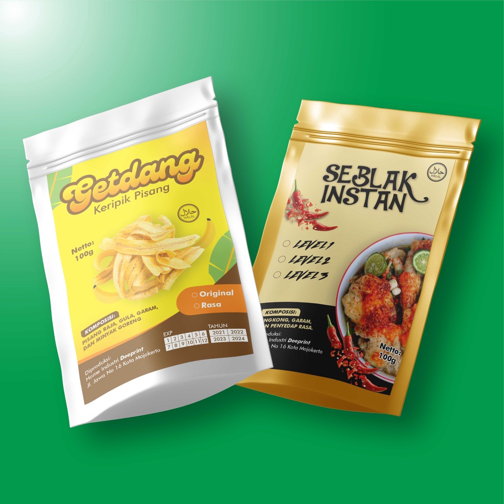 Cetak Stiker Label Kemasan Standing Pouch Produk Makanan Camilan bedda lotong Murah