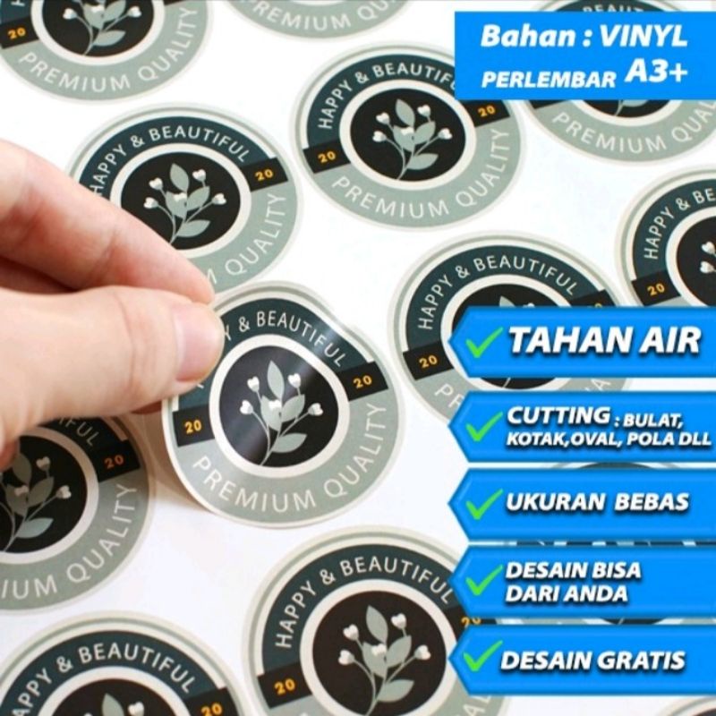 Cetak Stiker / Sticker Label A3 A3+ bahan Vynil anti air - glossy