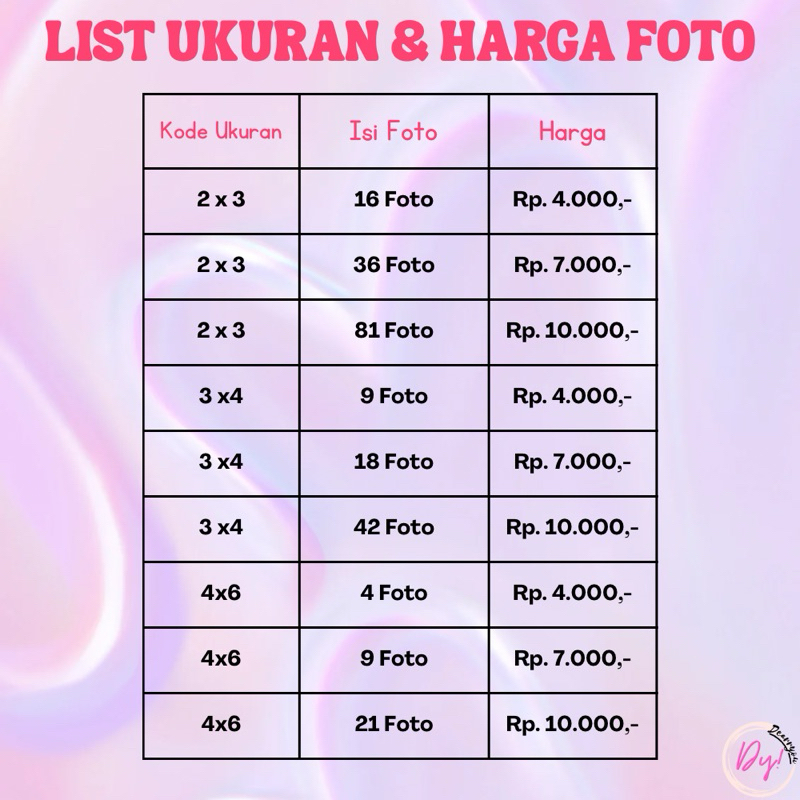 Cetak Ukuran Pas Foto 2x3 3x4 4x6