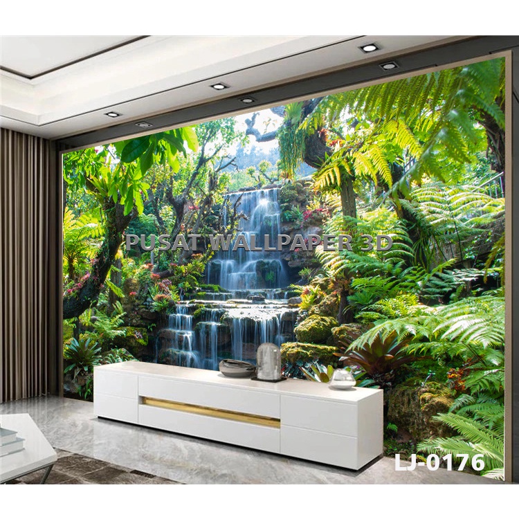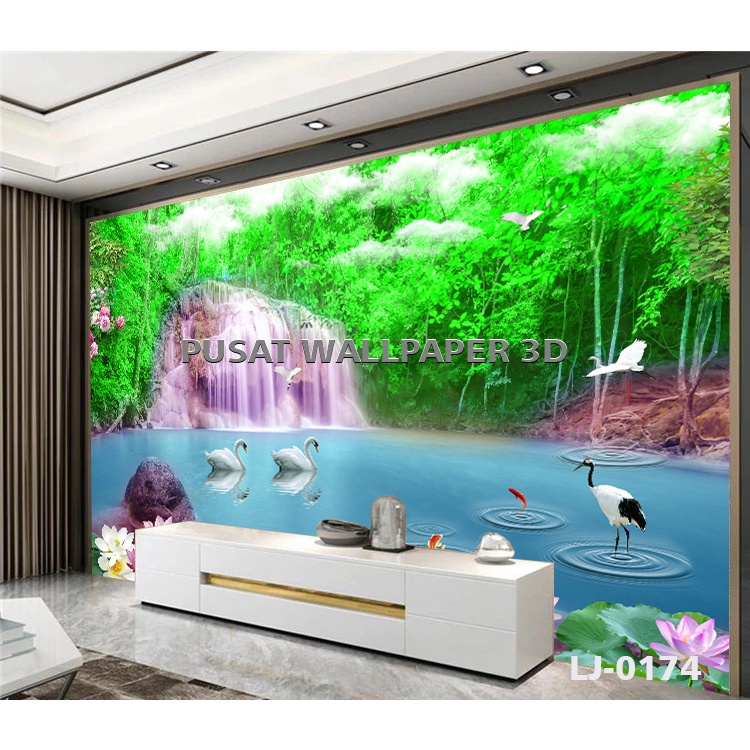 Cetak Wallpaper Dinding 3d Pemandangan Air Terjun Danau Sungai Hutan