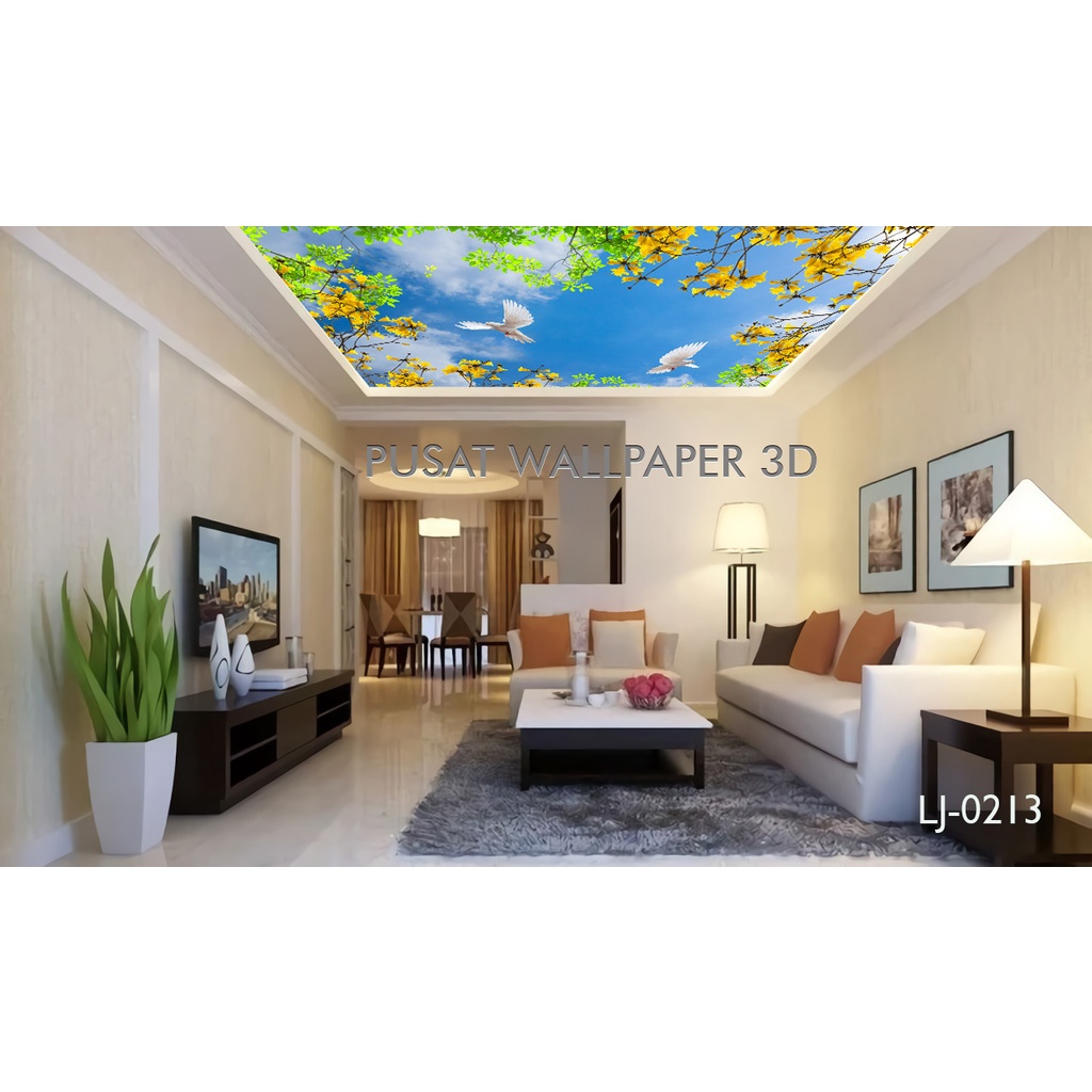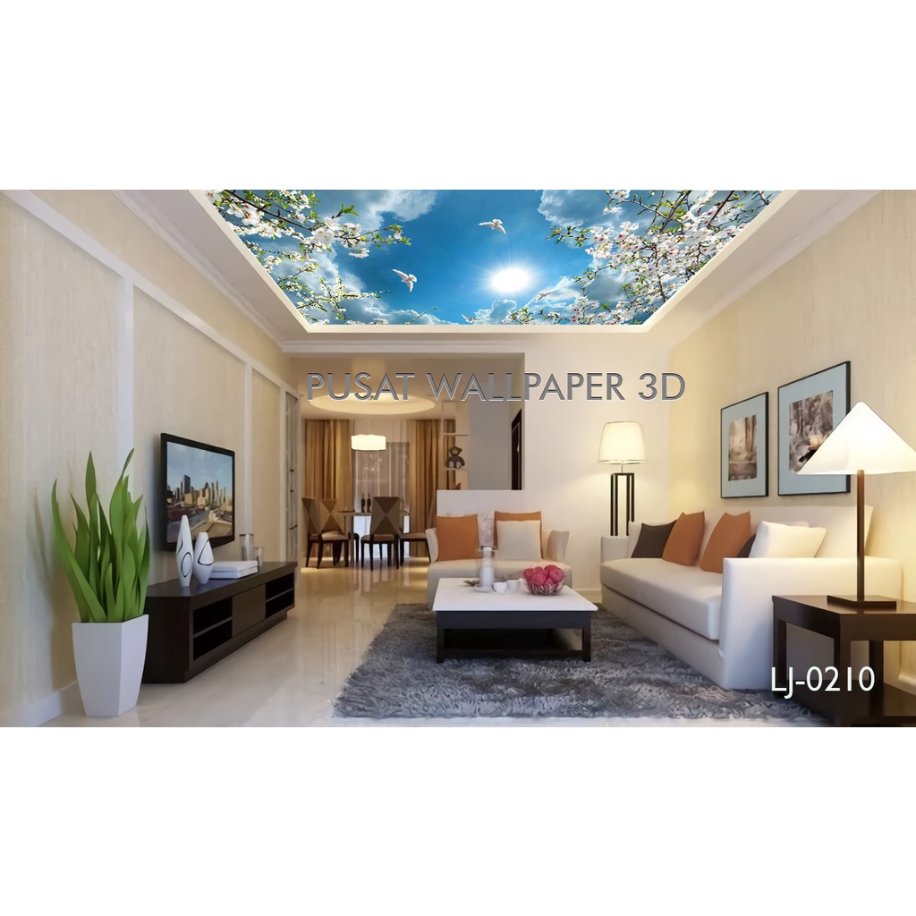 Cetak Wallpaper Plafon 3D Gambar Awan Ranting Pohon 3 Dimensi
