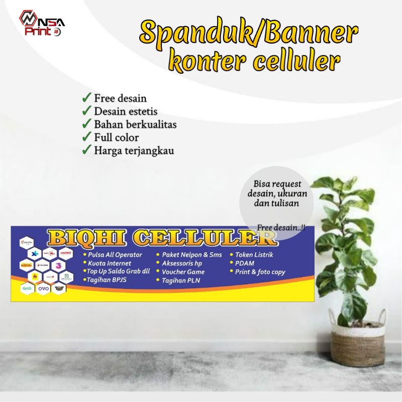 Cetak banner/spanduk, spanduk jual pulsa & kuota internet, spanduk warung jajanan & minuman, Bisa request & free desain